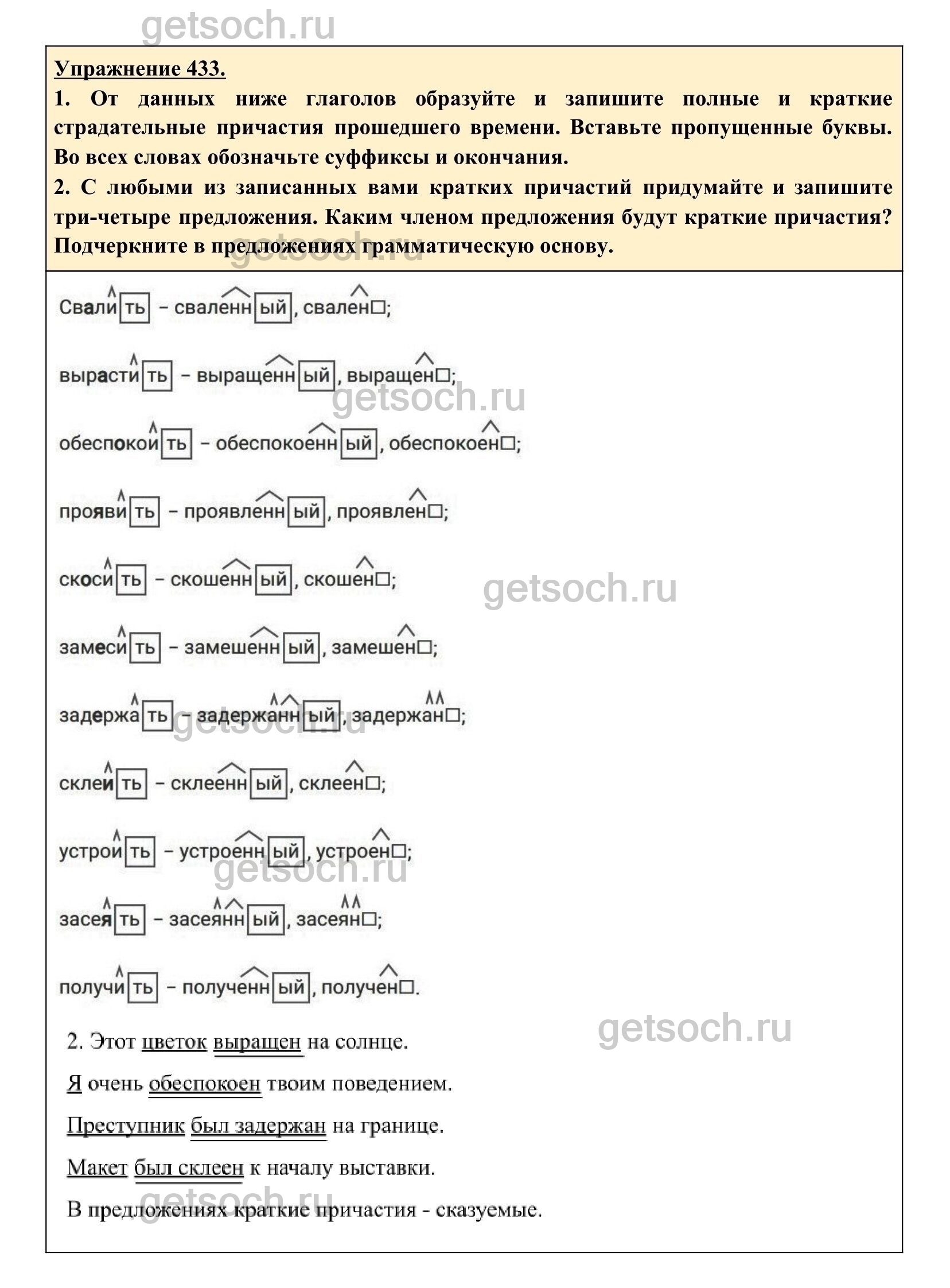Рассмотрим ответы на Упражнение 433 из учебника по русскому языку для 6 класса Разумовской