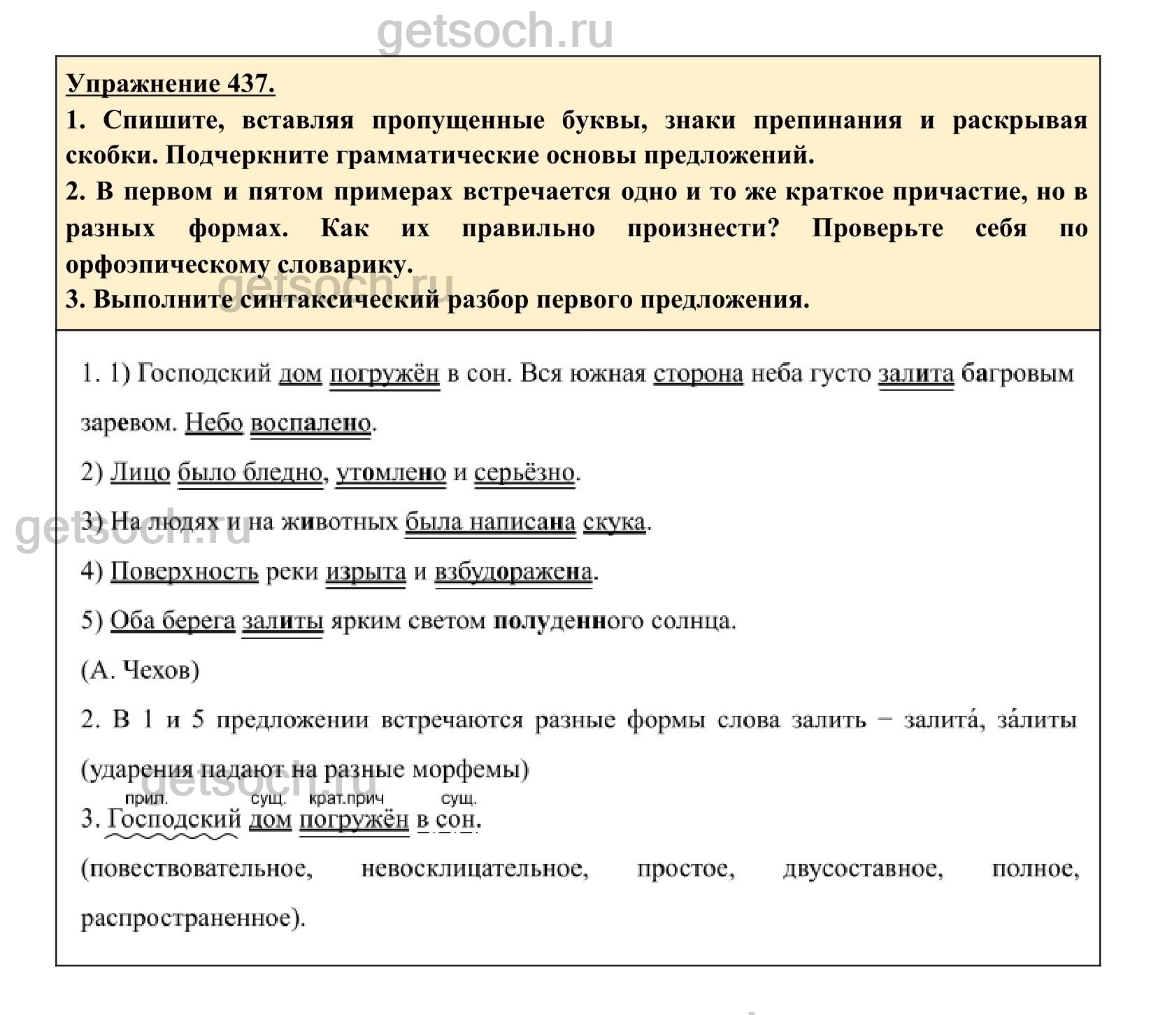 Рассмотрим ответы на Упражнение 437 из учебника по русскому языку для 6 класса Разумовской