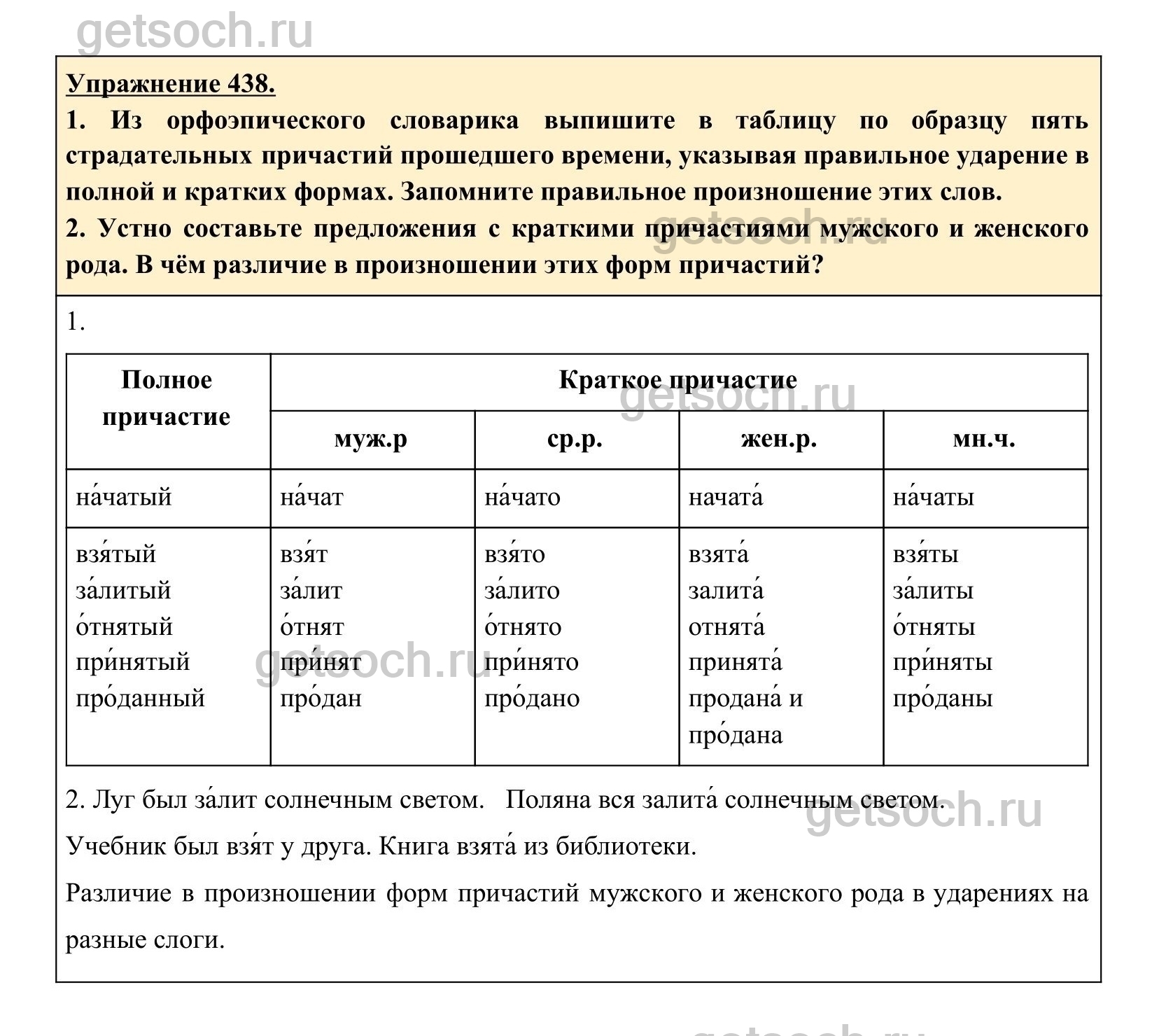 Рассмотрим ответы на Упражнение 438 из учебника по русскому языку для 6 класса Разумовской