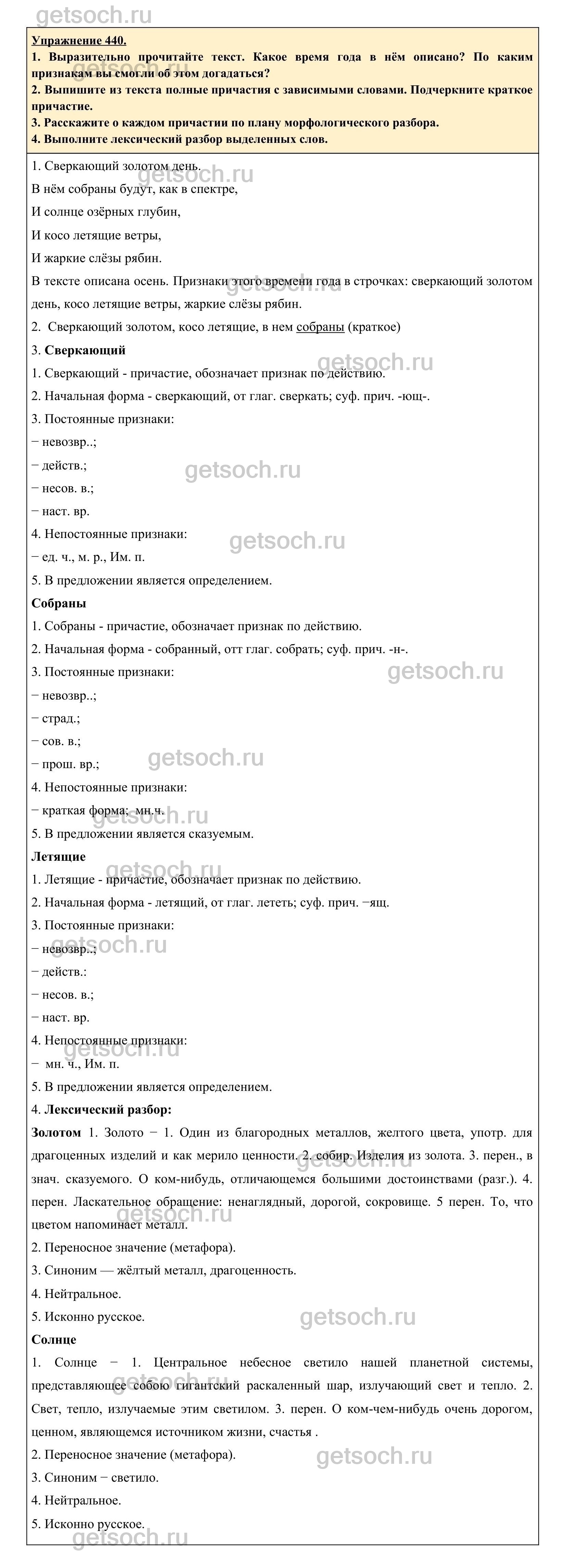 Рассмотрим ответы на Упражнение 440 из учебника по русскому языку для 6 класса Разумовской