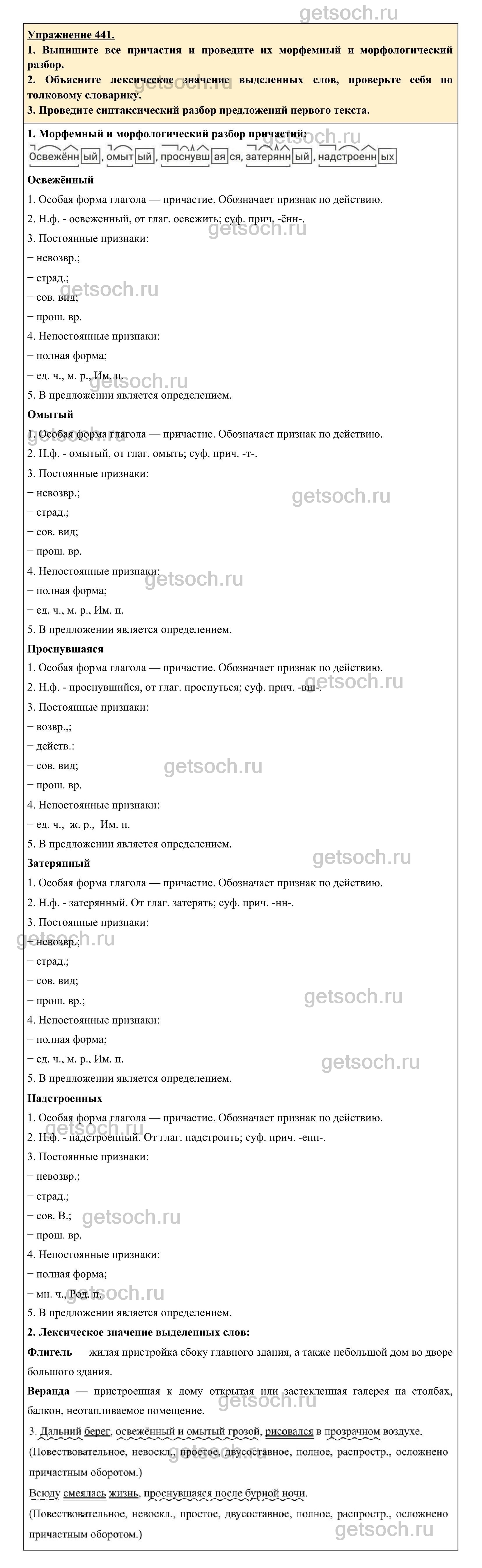 Рассмотрим ответы на Упражнение 441 из учебника по русскому языку для 6 класса Разумовской