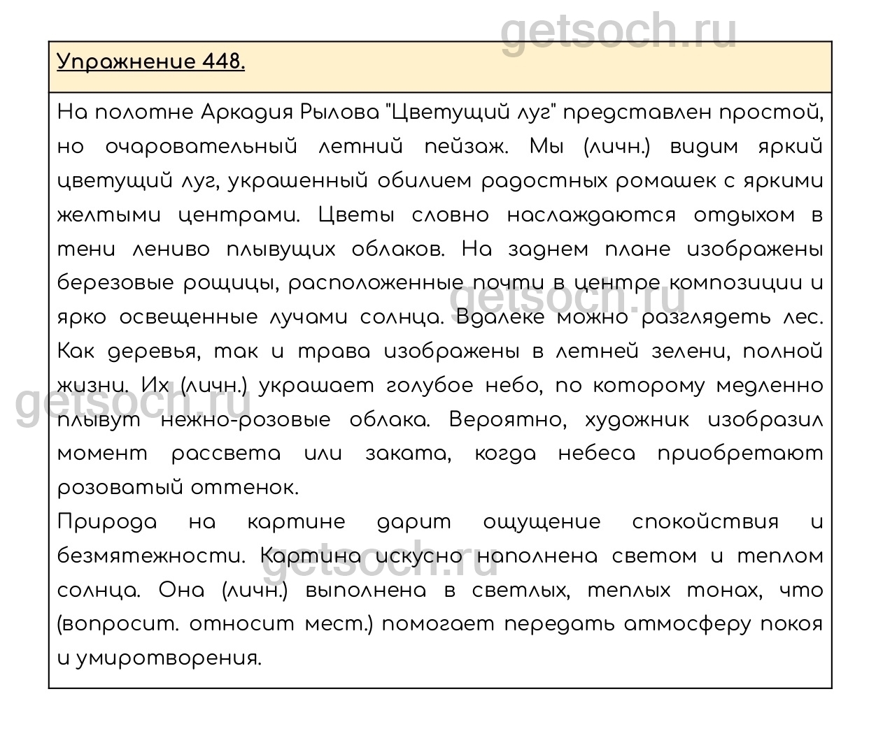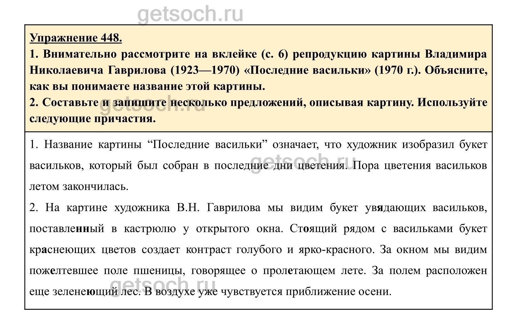 Рассмотрим ответы на Упражнение 448 из учебника по русскому языку для 6 класса Разумовской