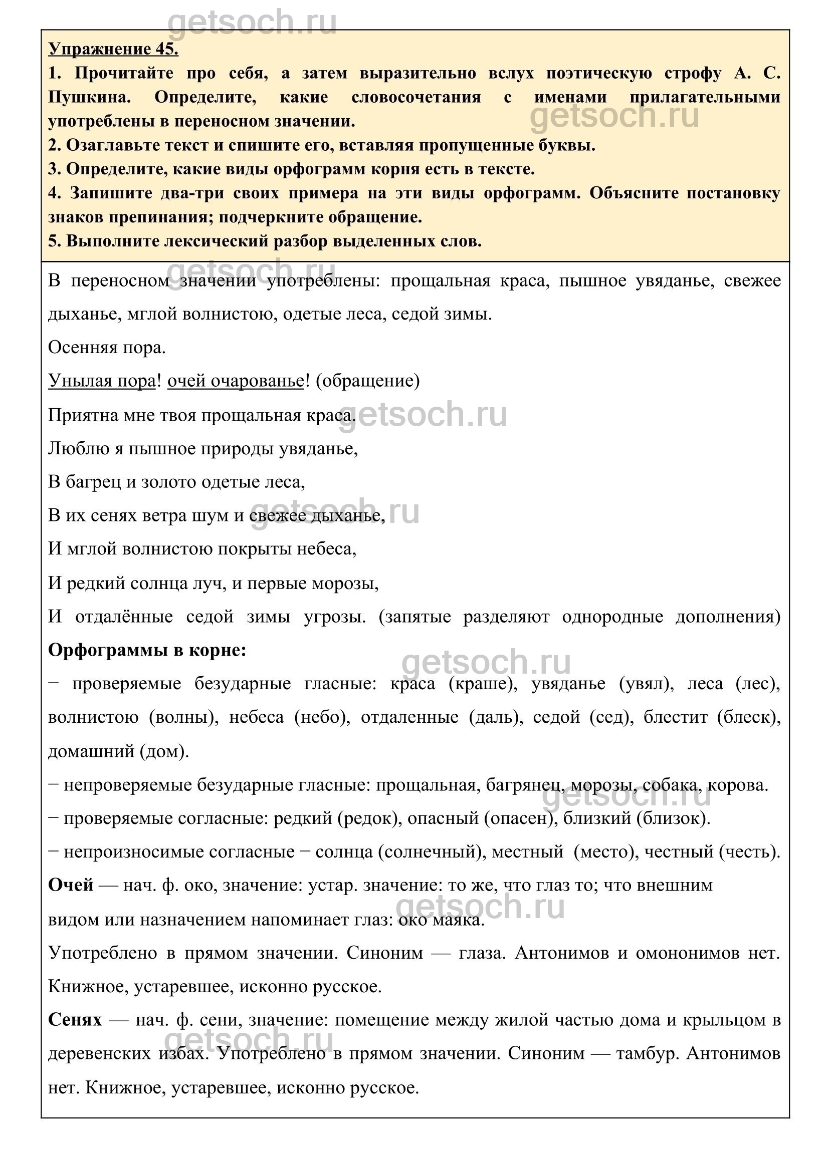 Рассмотрим ответы на Упражнение 45 из учебника по русскому языку для 6 класса Разумовской