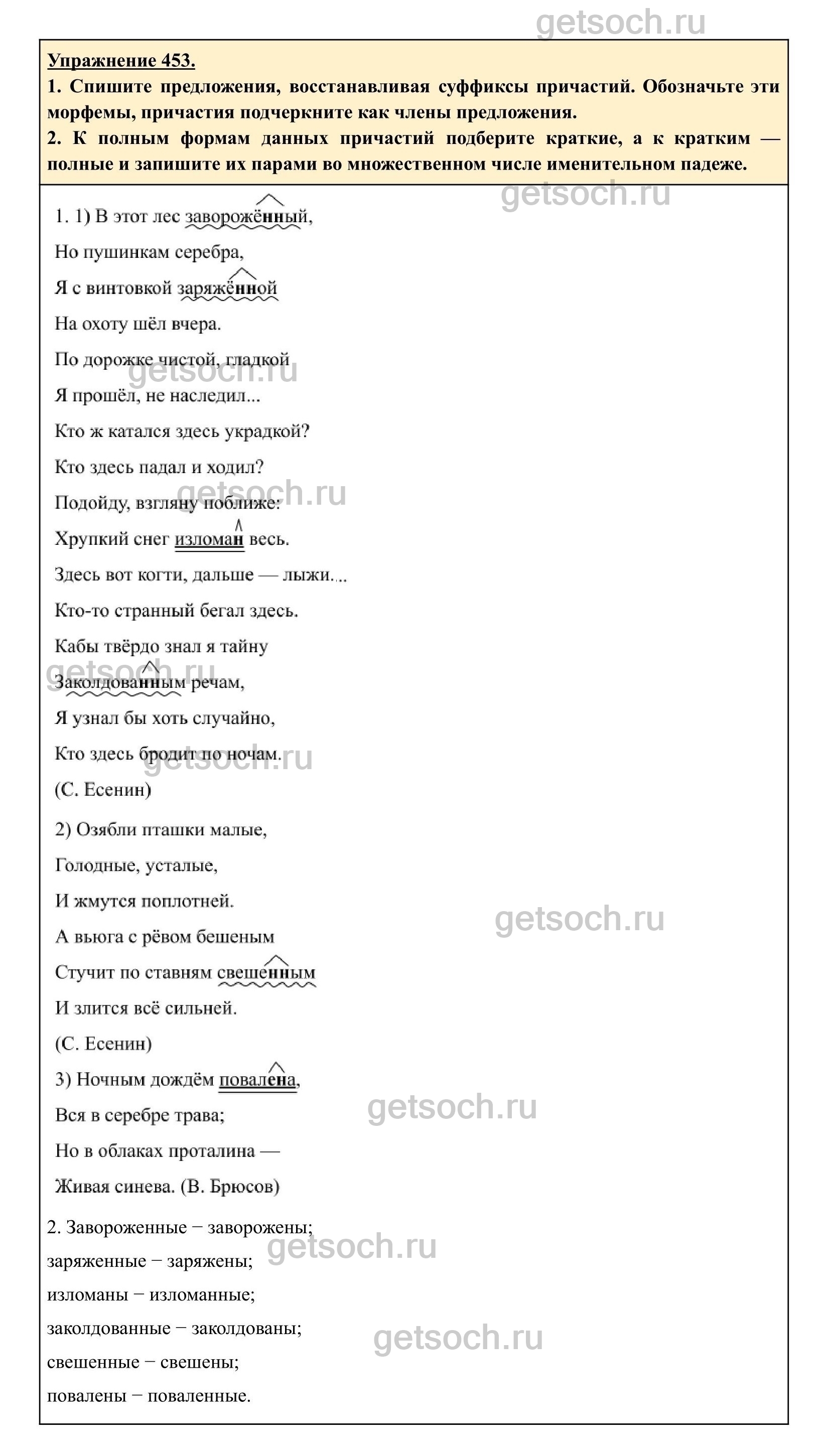 Рассмотрим ответы на Упражнение 453 из учебника по русскому языку для 6 класса Разумовской