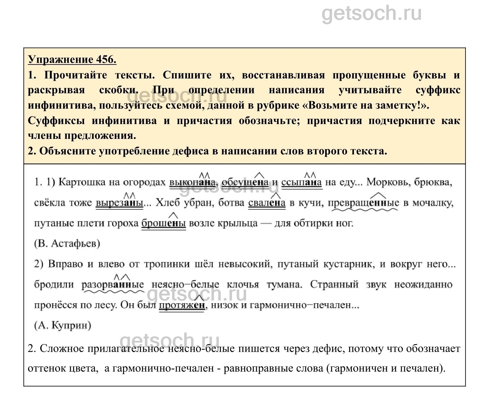 Рассмотрим ответы на Упражнение 456 из учебника по русскому языку для 6 класса Разумовской