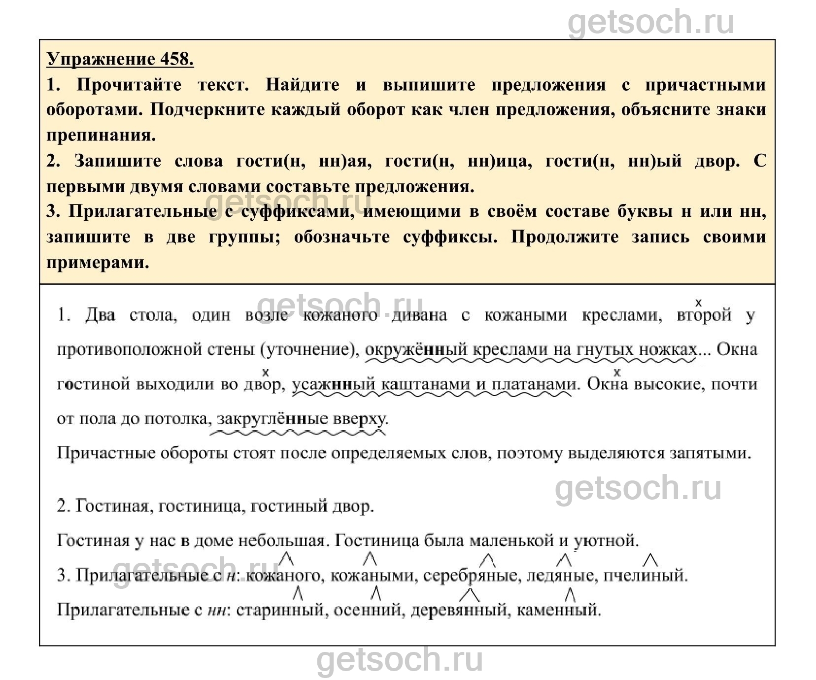 Рассмотрим ответы на Упражнение 458 из учебника по русскому языку для 6 класса Разумовской