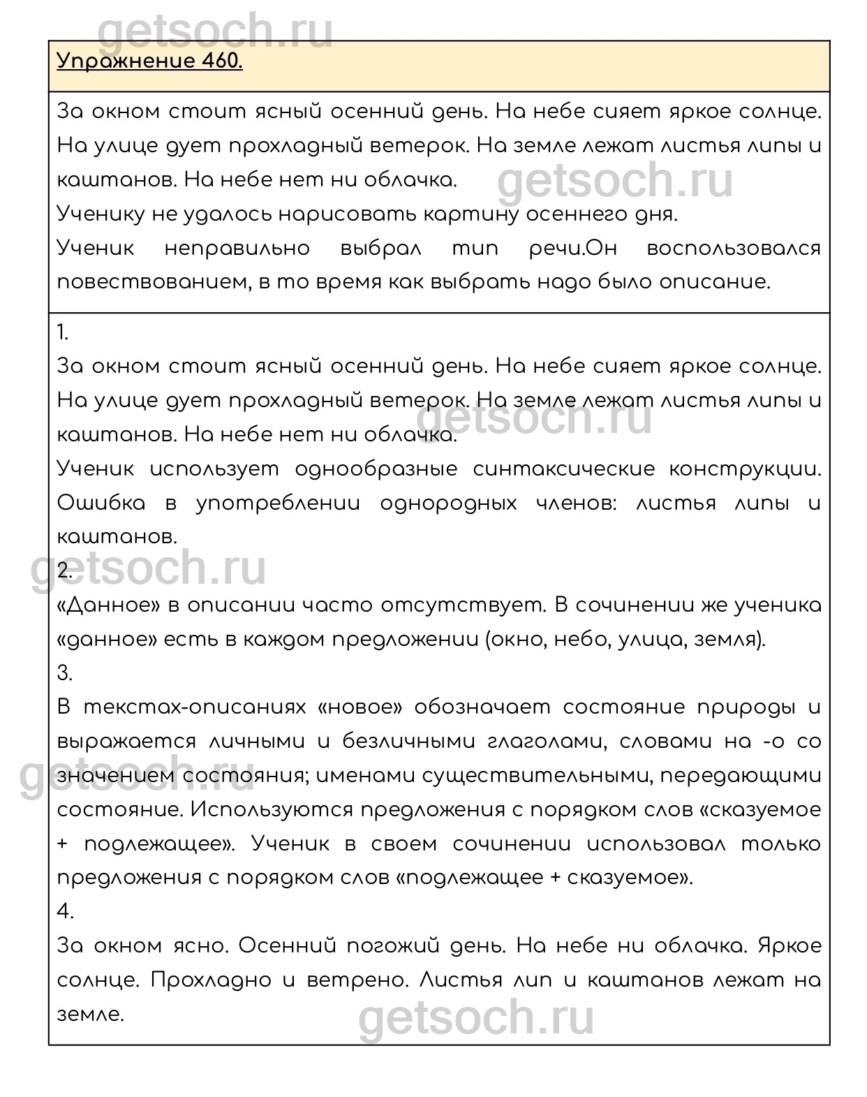 Рассмотрим ответы на Упражнение 460 из учебника по русскому языку для 6 класса Разумовской