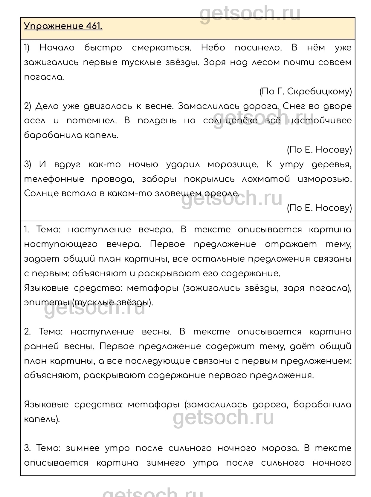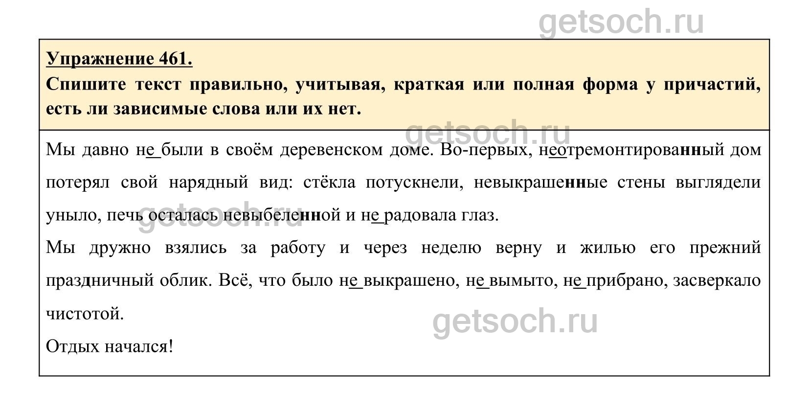 Рассмотрим ответы на Упражнение 461 из учебника по русскому языку для 6 класса Разумовской