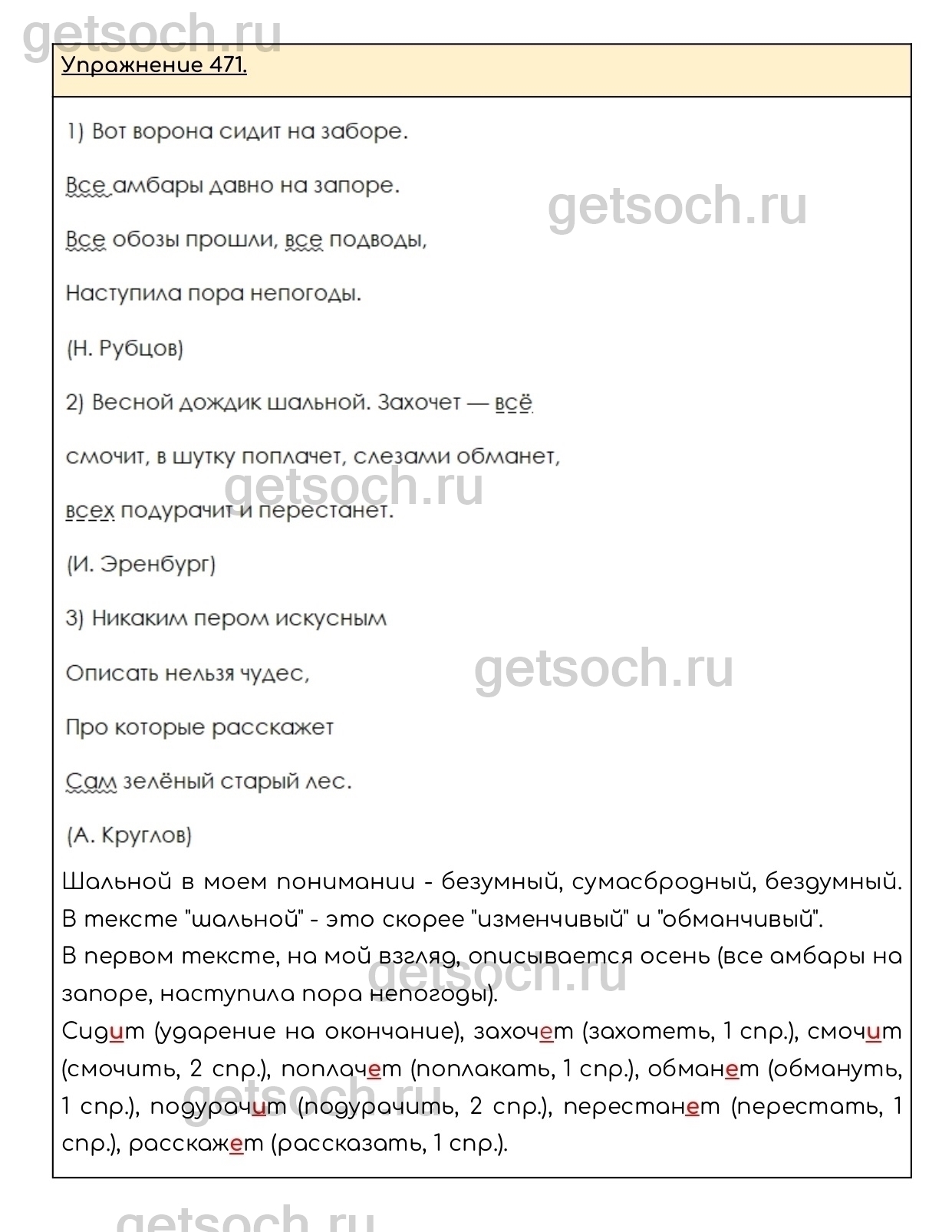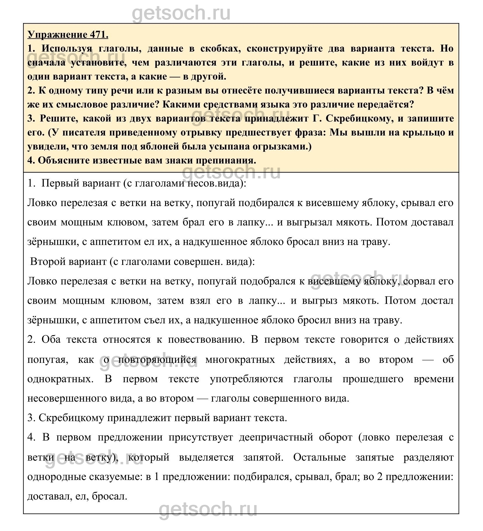 Рассмотрим ответы на Упражнение 471 из учебника по русскому языку для 6 класса Разумовской