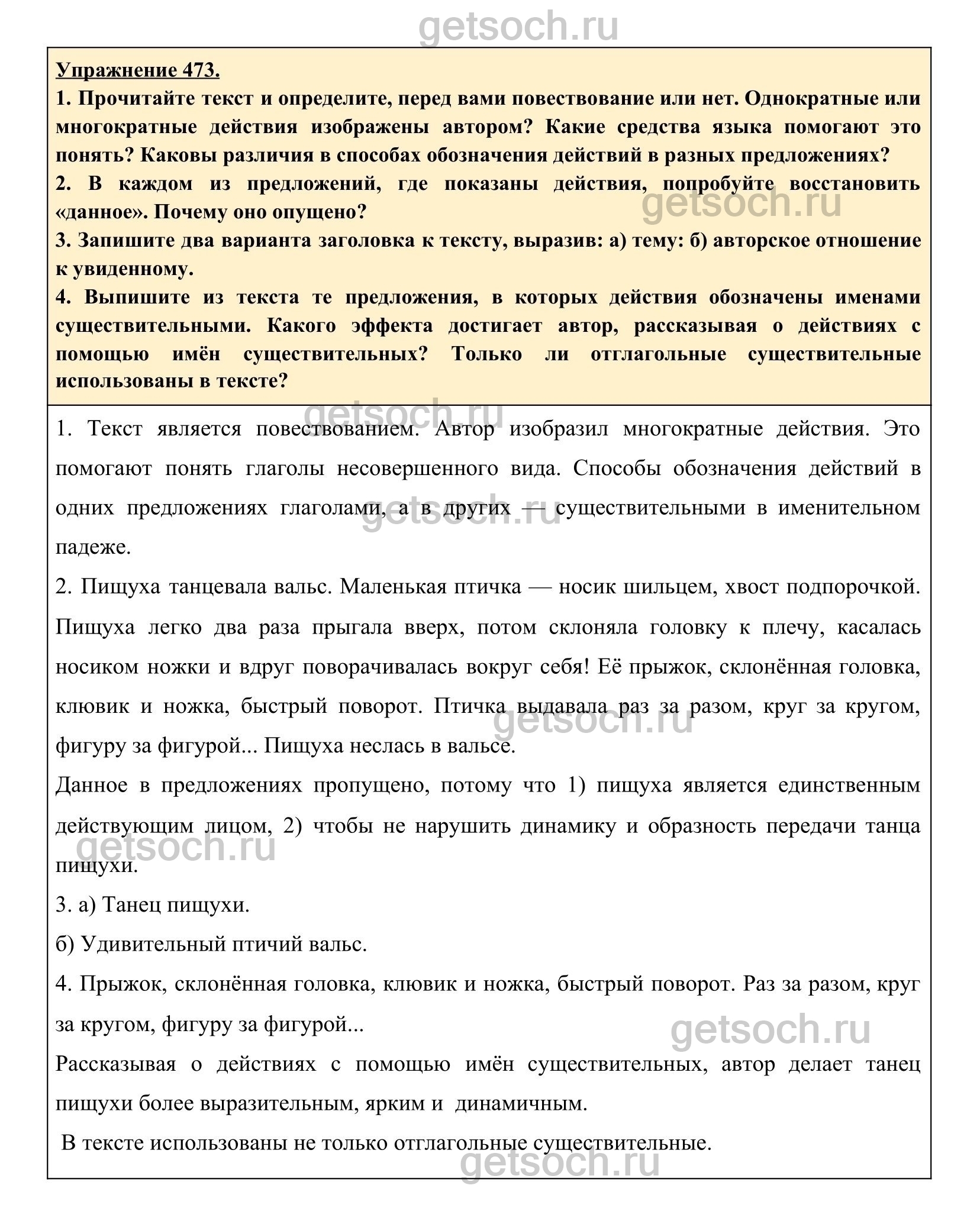 Рассмотрим ответы на Упражнение 473 из учебника по русскому языку для 6 класса Разумовской