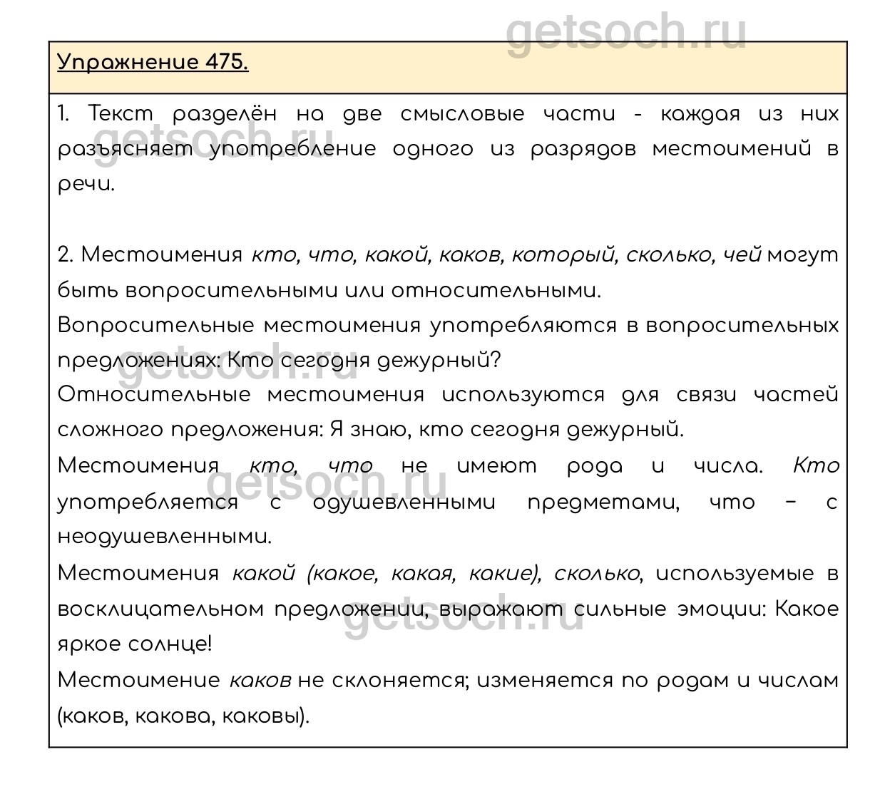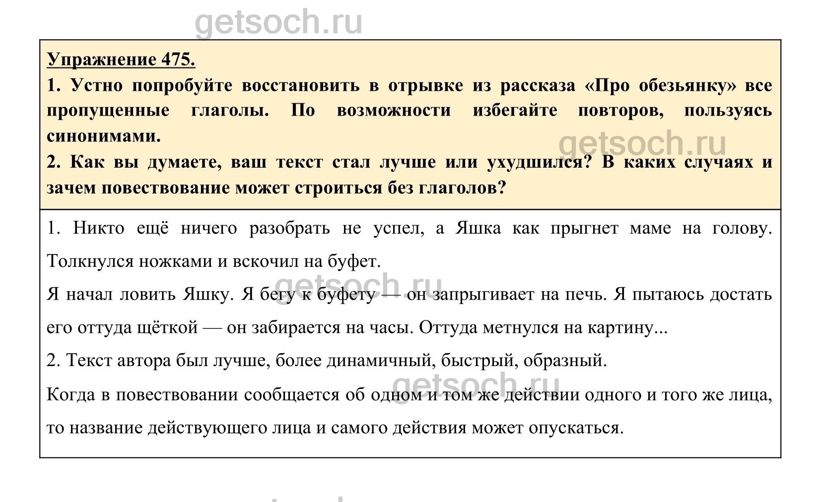 Рассмотрим ответы на Упражнение 475 из учебника по русскому языку для 6 класса Разумовской