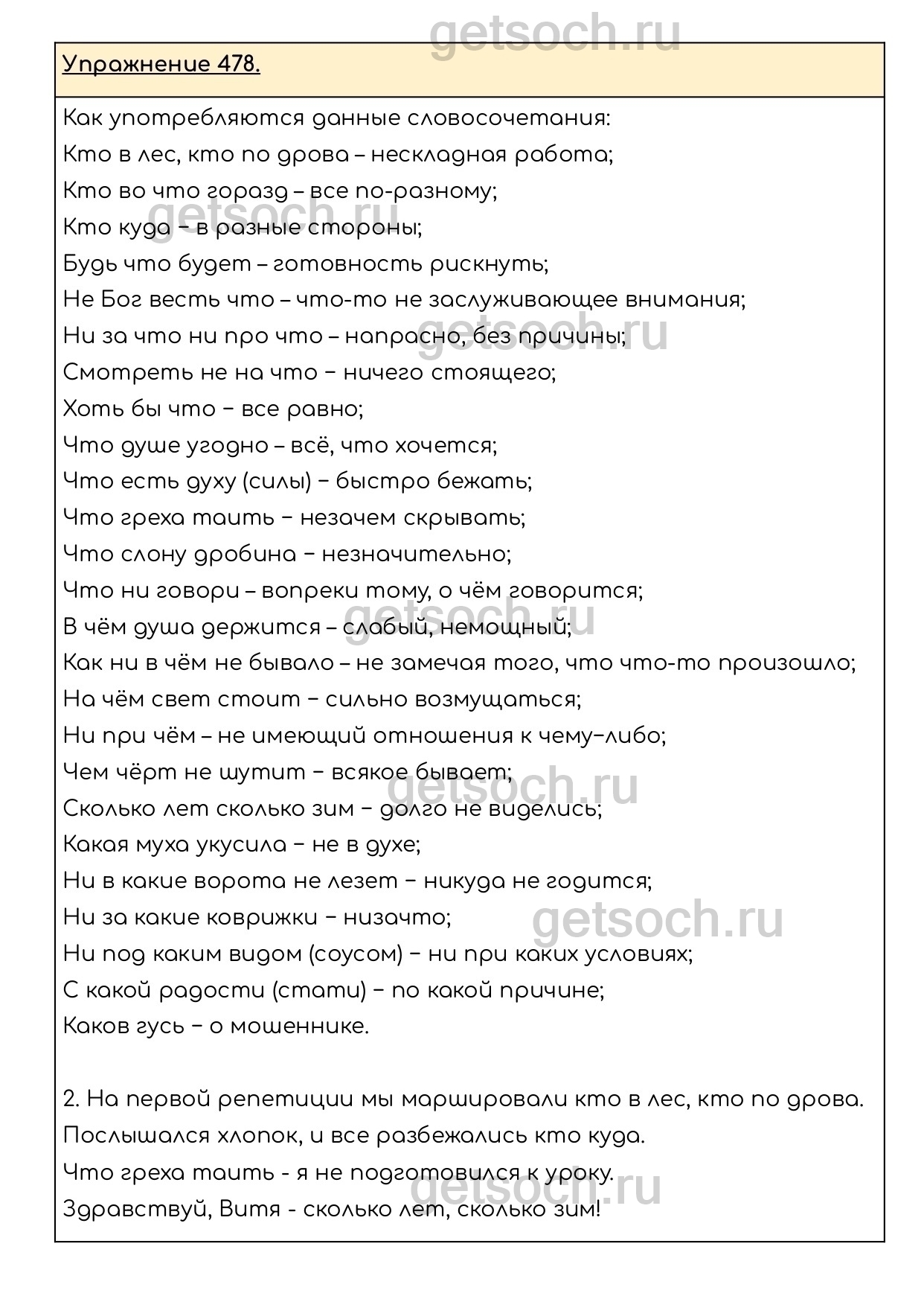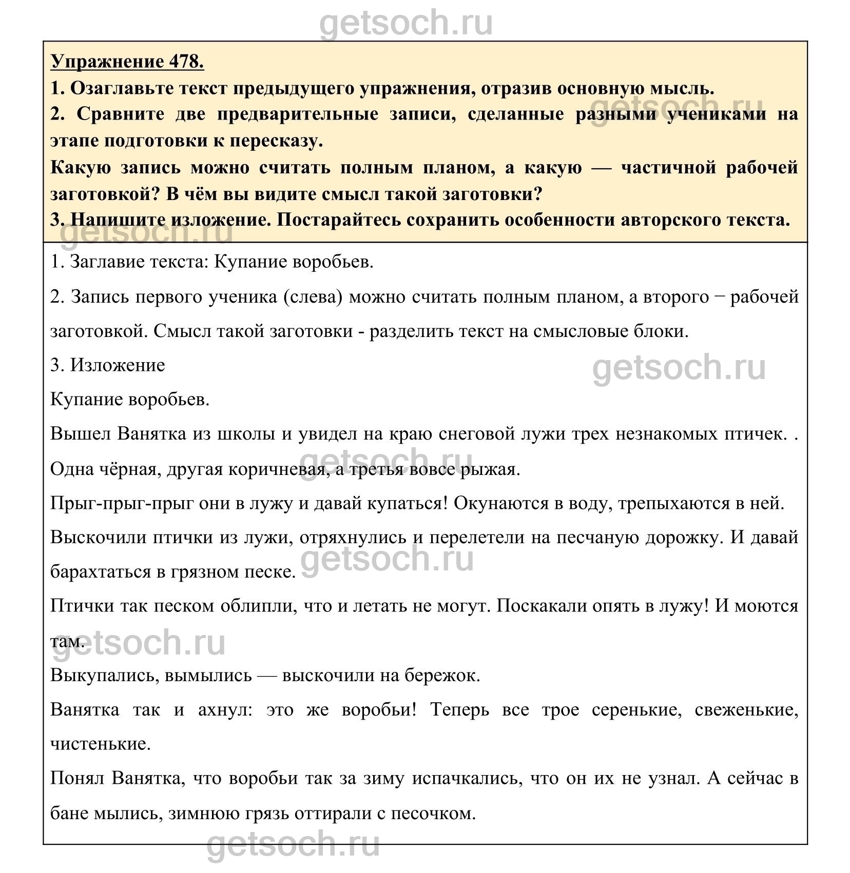 Рассмотрим ответы на Упражнение 478 из учебника по русскому языку для 6 класса Разумовской