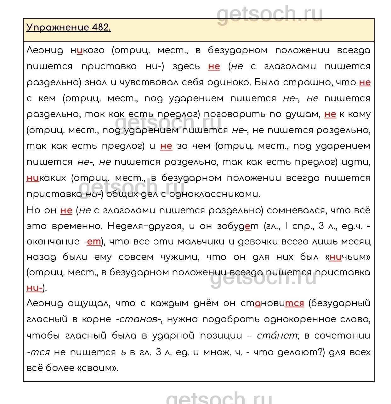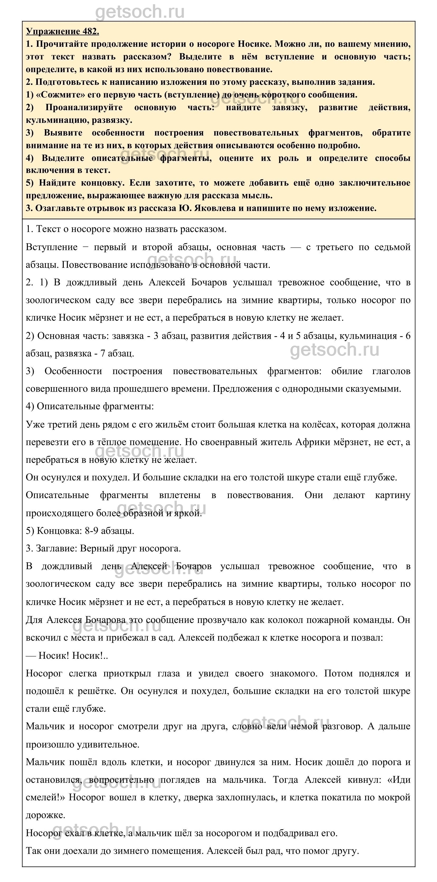 Рассмотрим ответы на Упражнение 482 из учебника по русскому языку для 6 класса Разумовской
