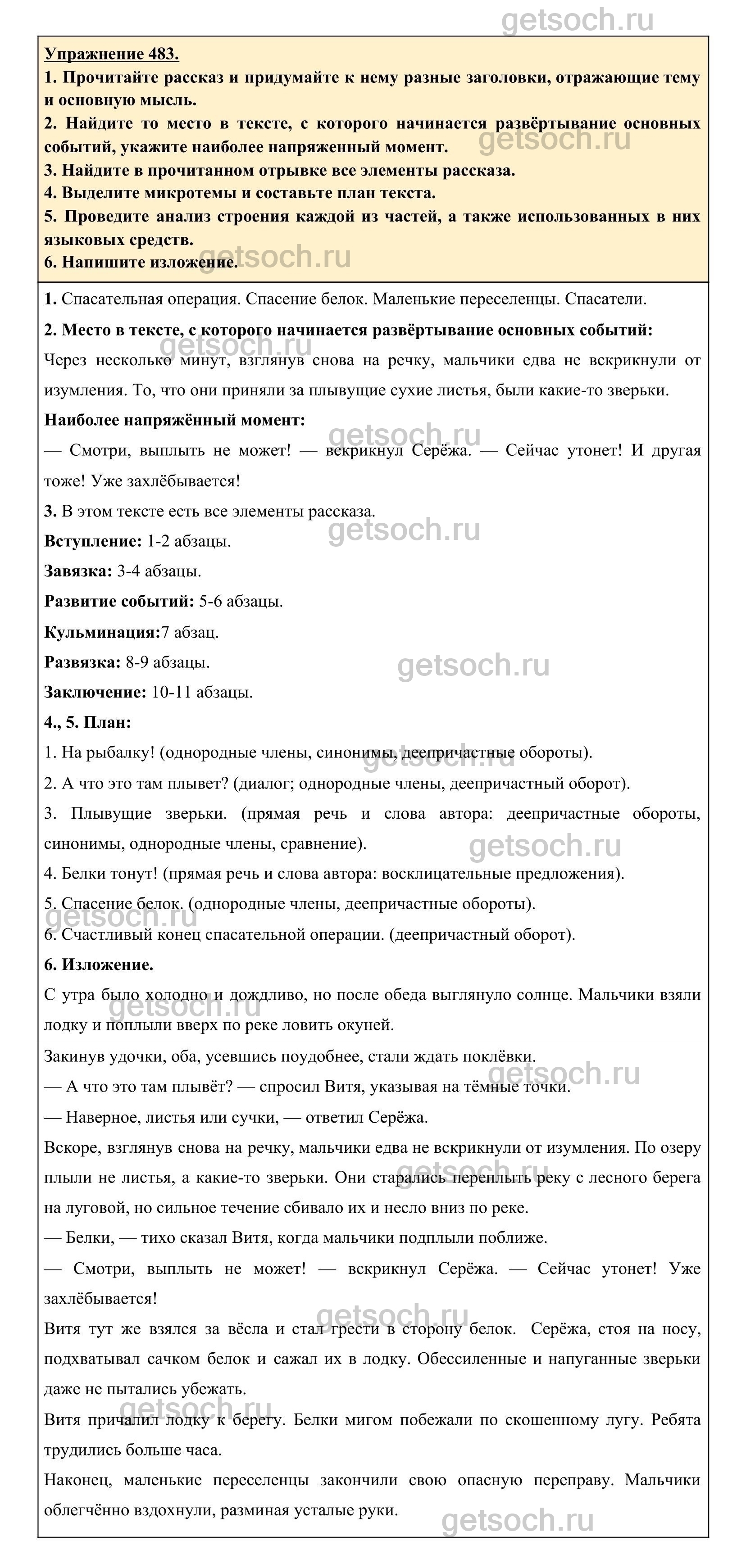 Рассмотрим ответы на Упражнение 483 из учебника по русскому языку для 6 класса Разумовской
