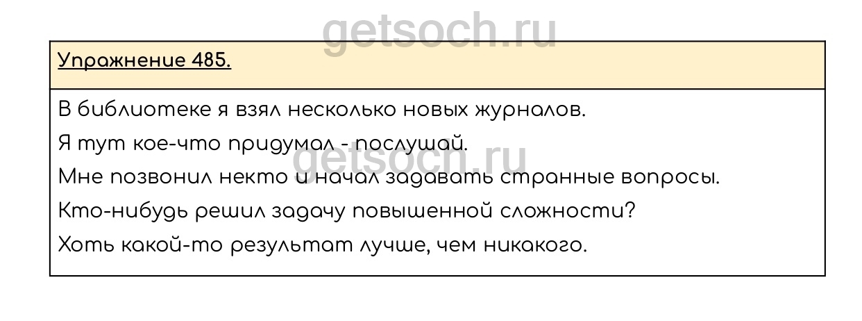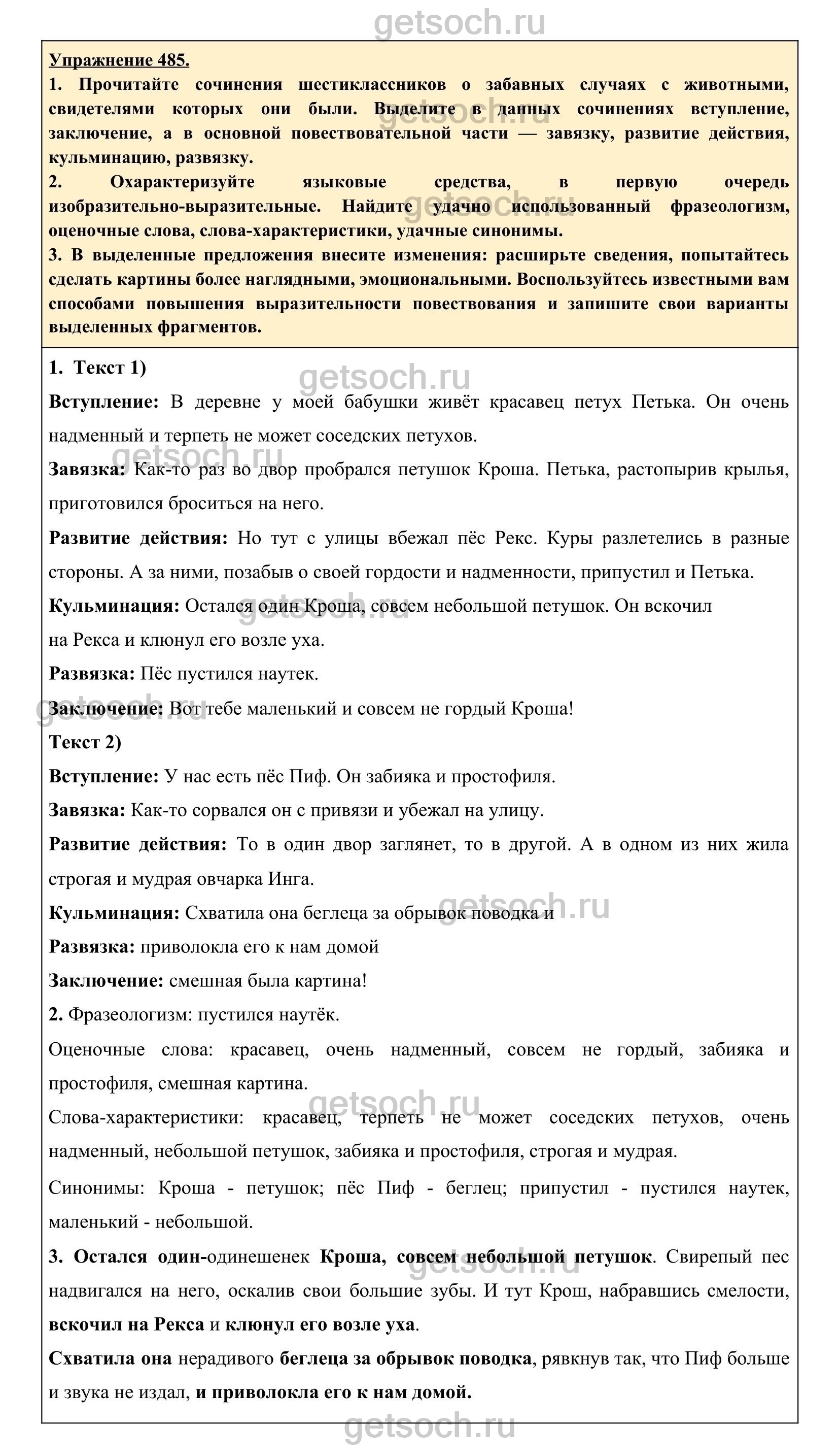 Рассмотрим ответы на Упражнение 485 из учебника по русскому языку для 6 класса Разумовской