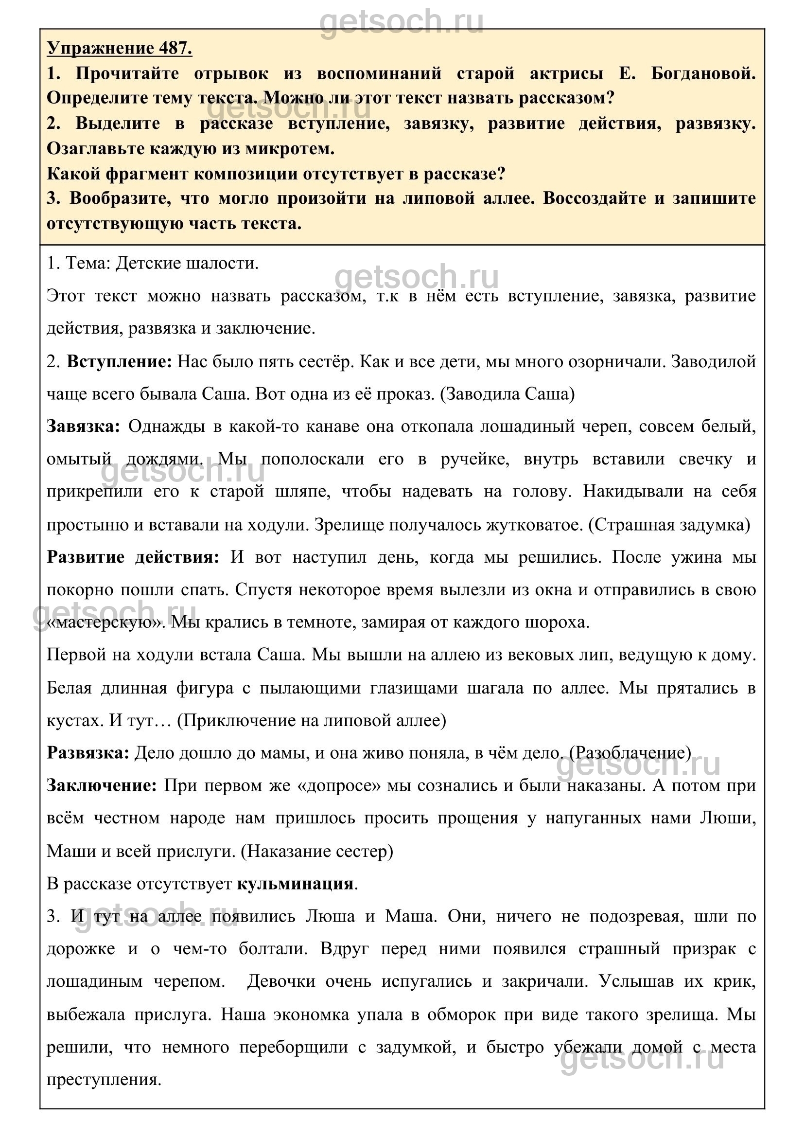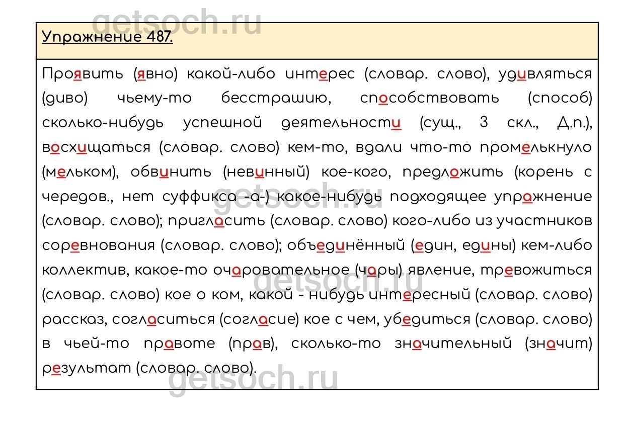 Рассмотрим ответы на Упражнение 487 из учебника по русскому языку для 6 класса Разумовской