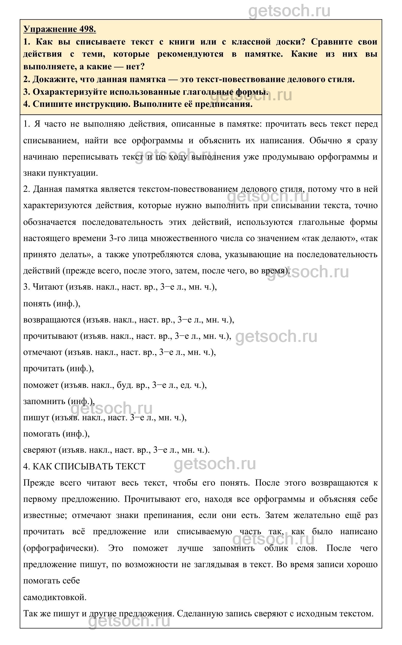Рассмотрим ответы на Упражнение 498 из учебника по русскому языку для 6 класса Разумовской