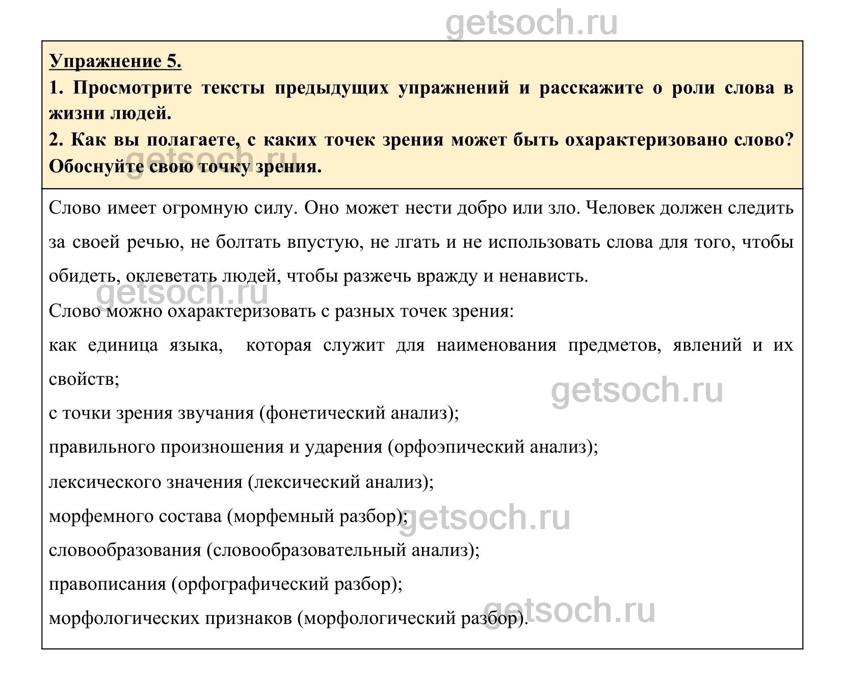 Рассмотрим ответы на Упражнение 5 из учебника по русскому языку для 6 класса Разумовской