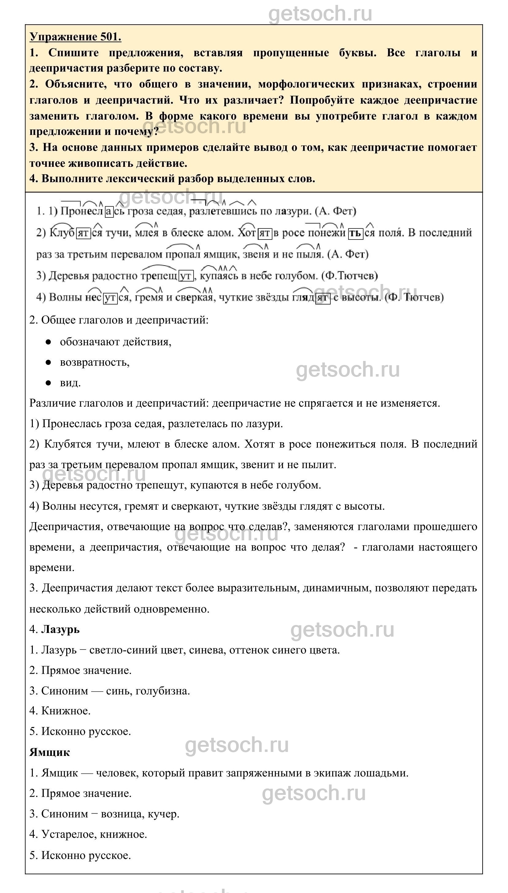 Рассмотрим ответы на Упражнение 501 из учебника по русскому языку для 6 класса Разумовской