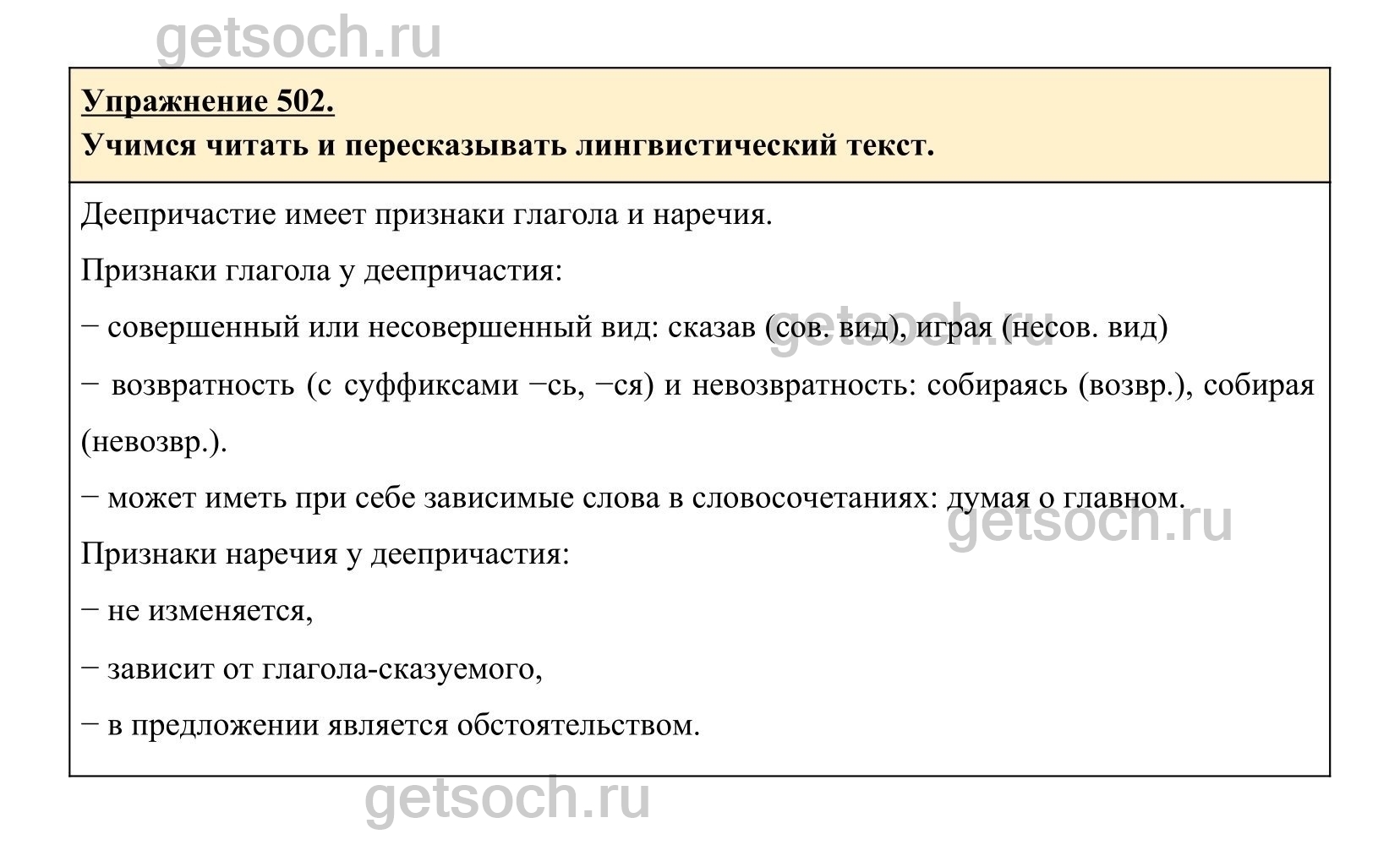 Рассмотрим ответы на Упражнение 502 из учебника по русскому языку для 6 класса Разумовской