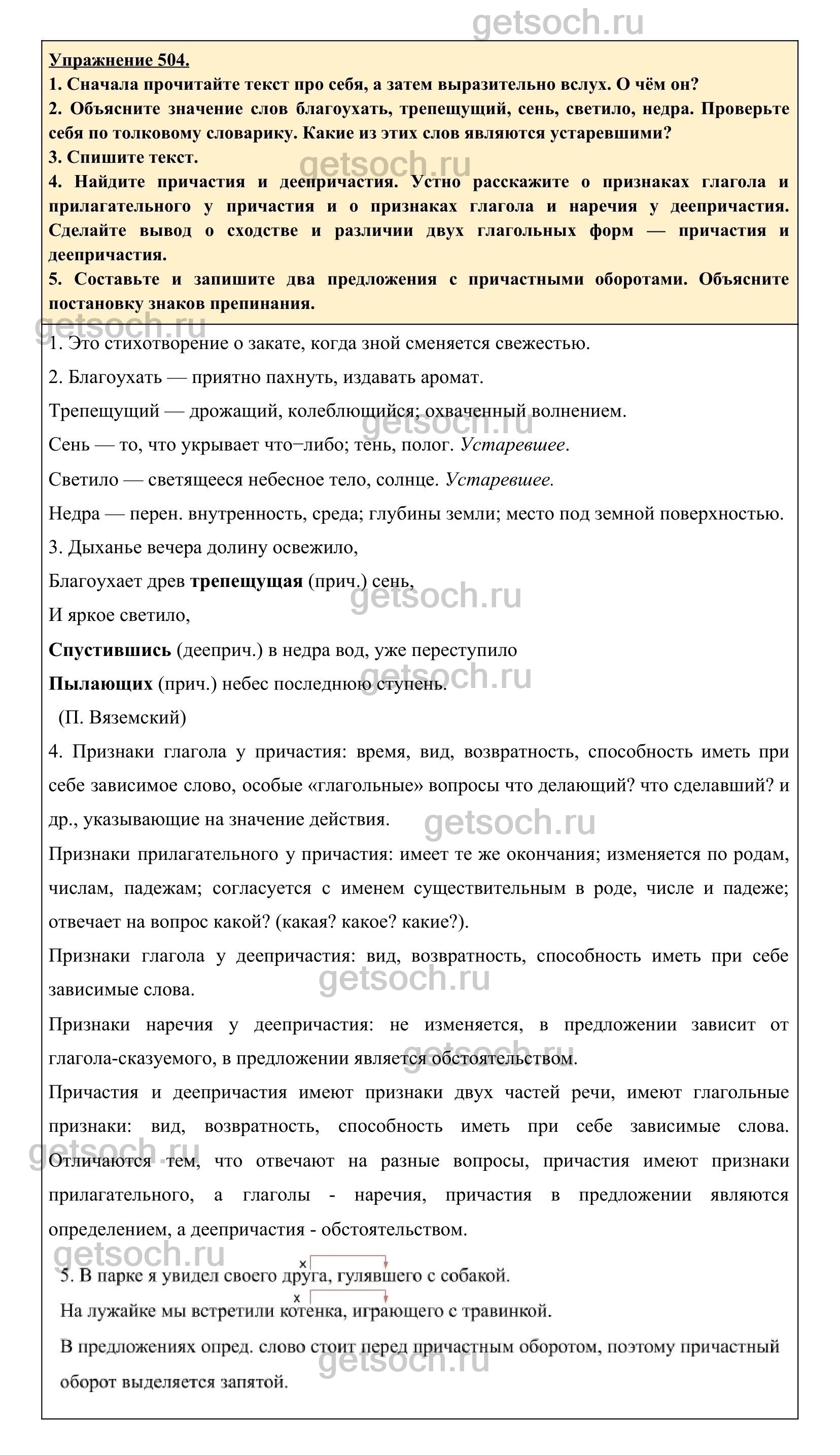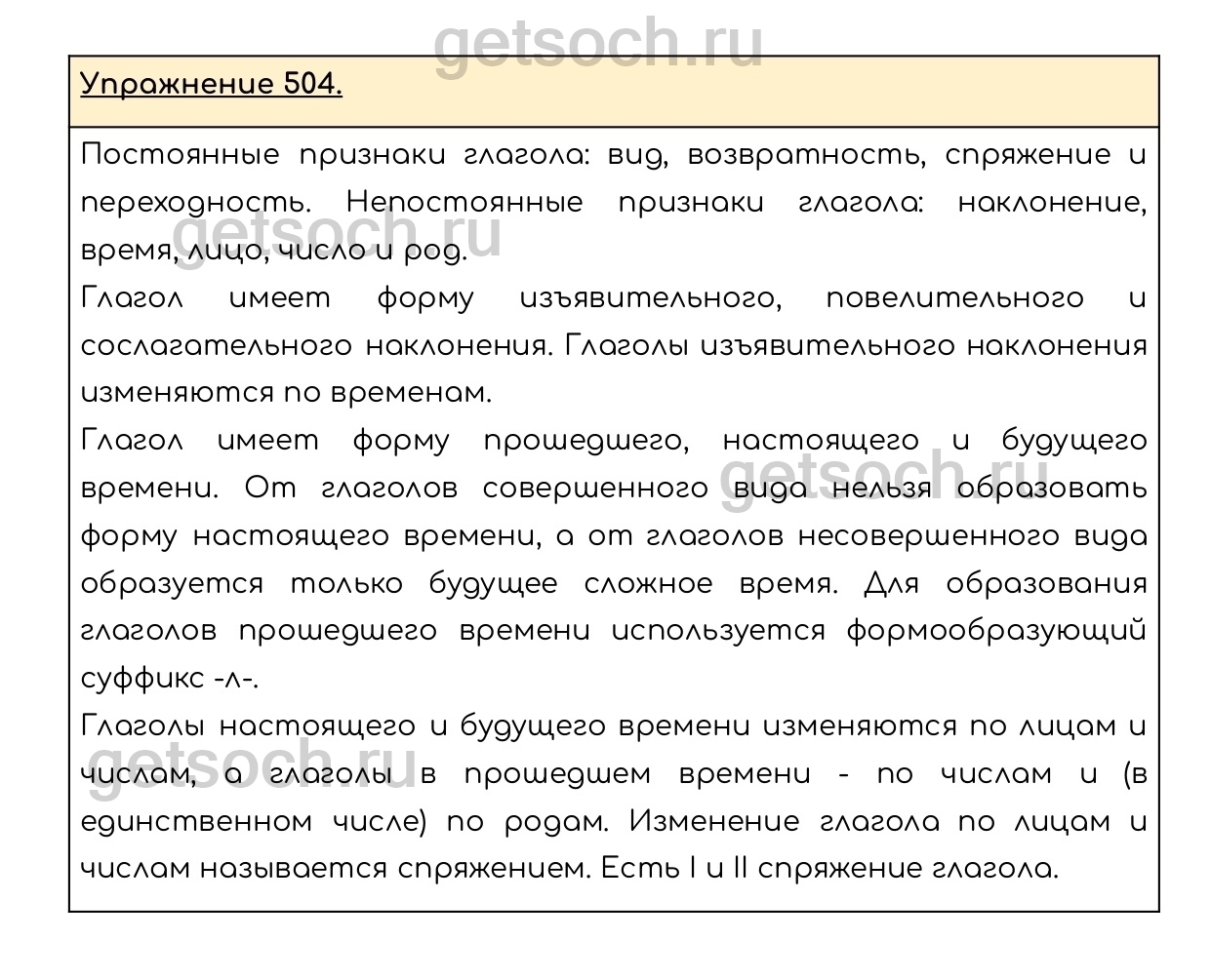 Рассмотрим ответы на Упражнение 504 из учебника по русскому языку для 6 класса Разумовской