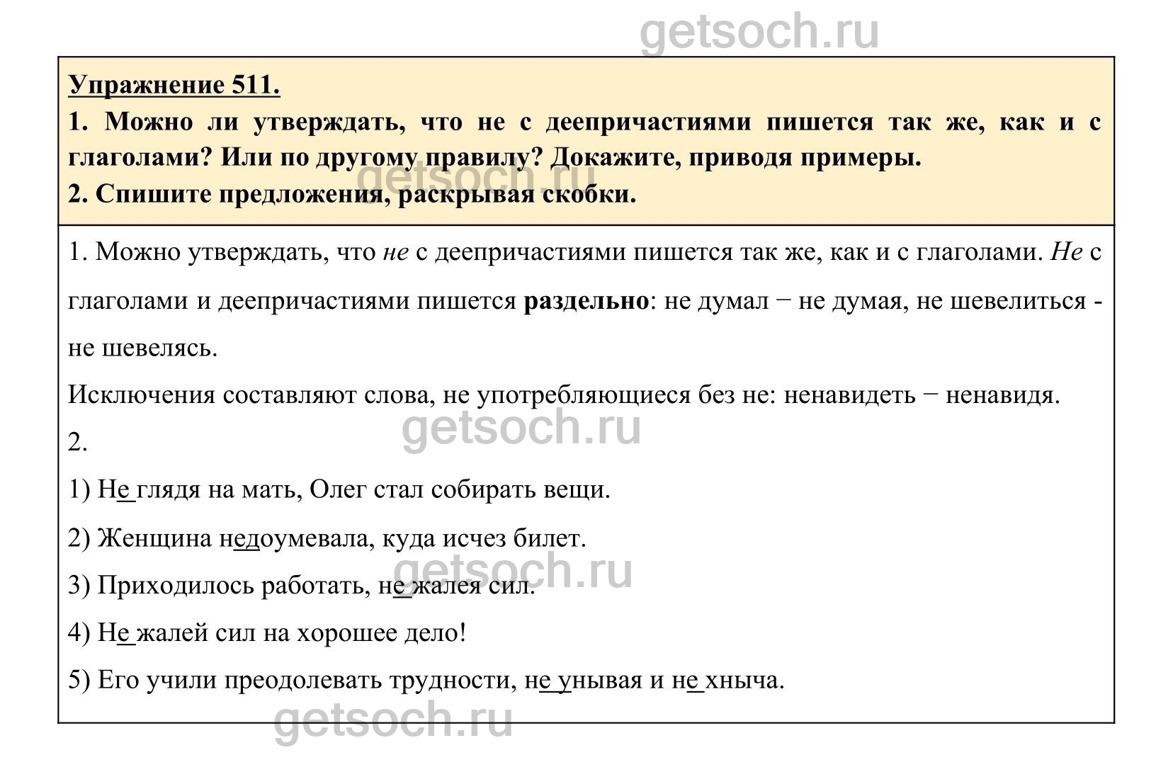 Рассмотрим ответы на Упражнение 511 из учебника по русскому языку для 6 класса Разумовской