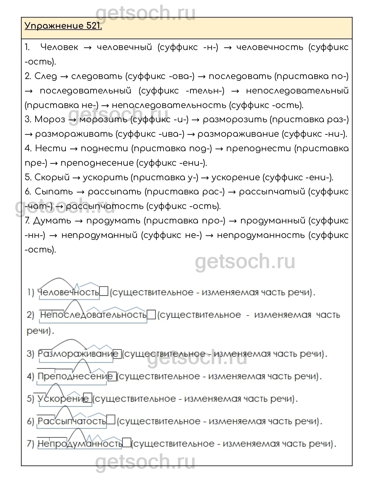 Рассмотрим ответы на Упражнение 521 из учебника по русскому языку для 6 класса Разумовской