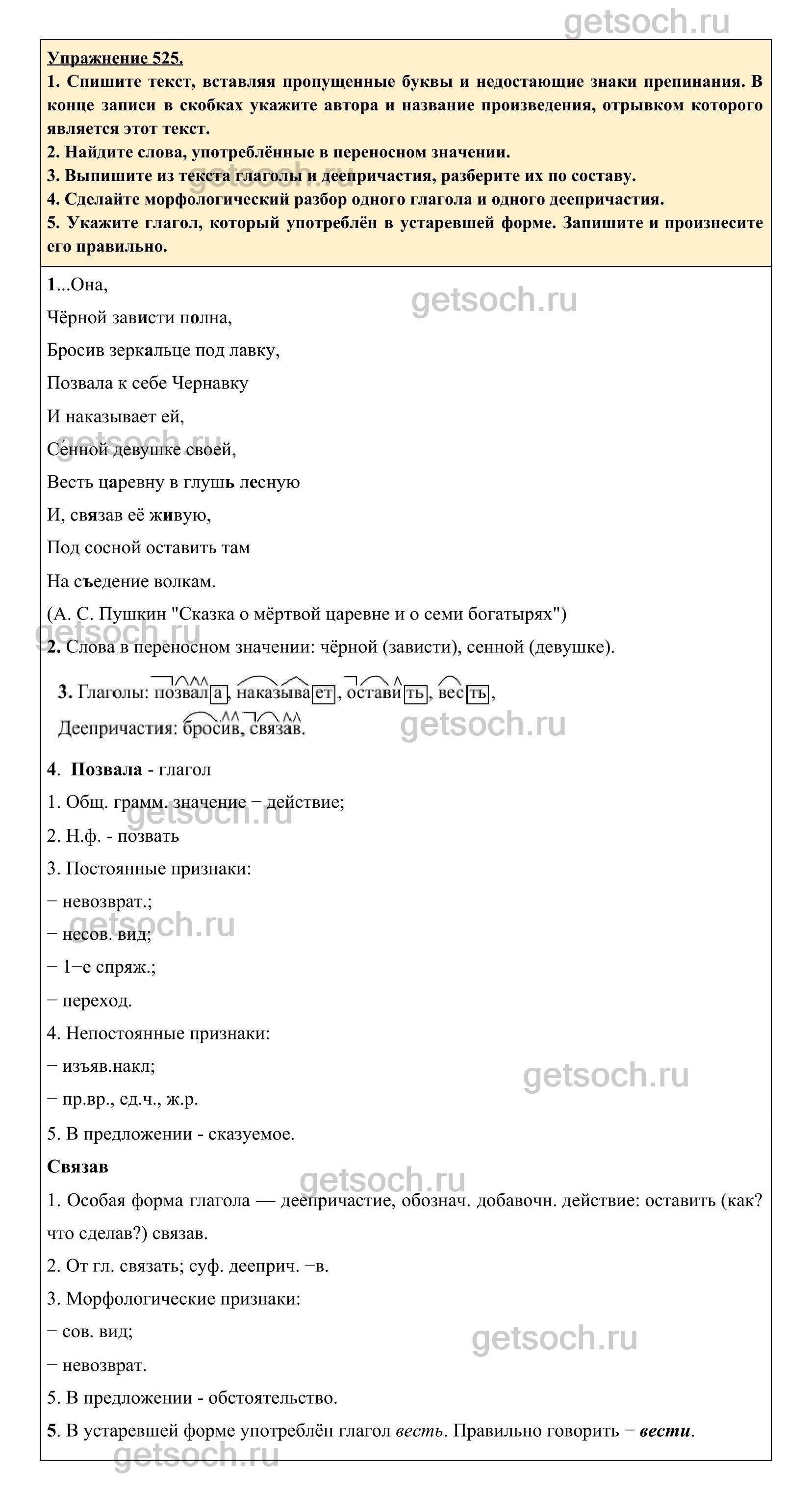 Рассмотрим ответы на Упражнение 525 из учебника по русскому языку для 6 класса Разумовской