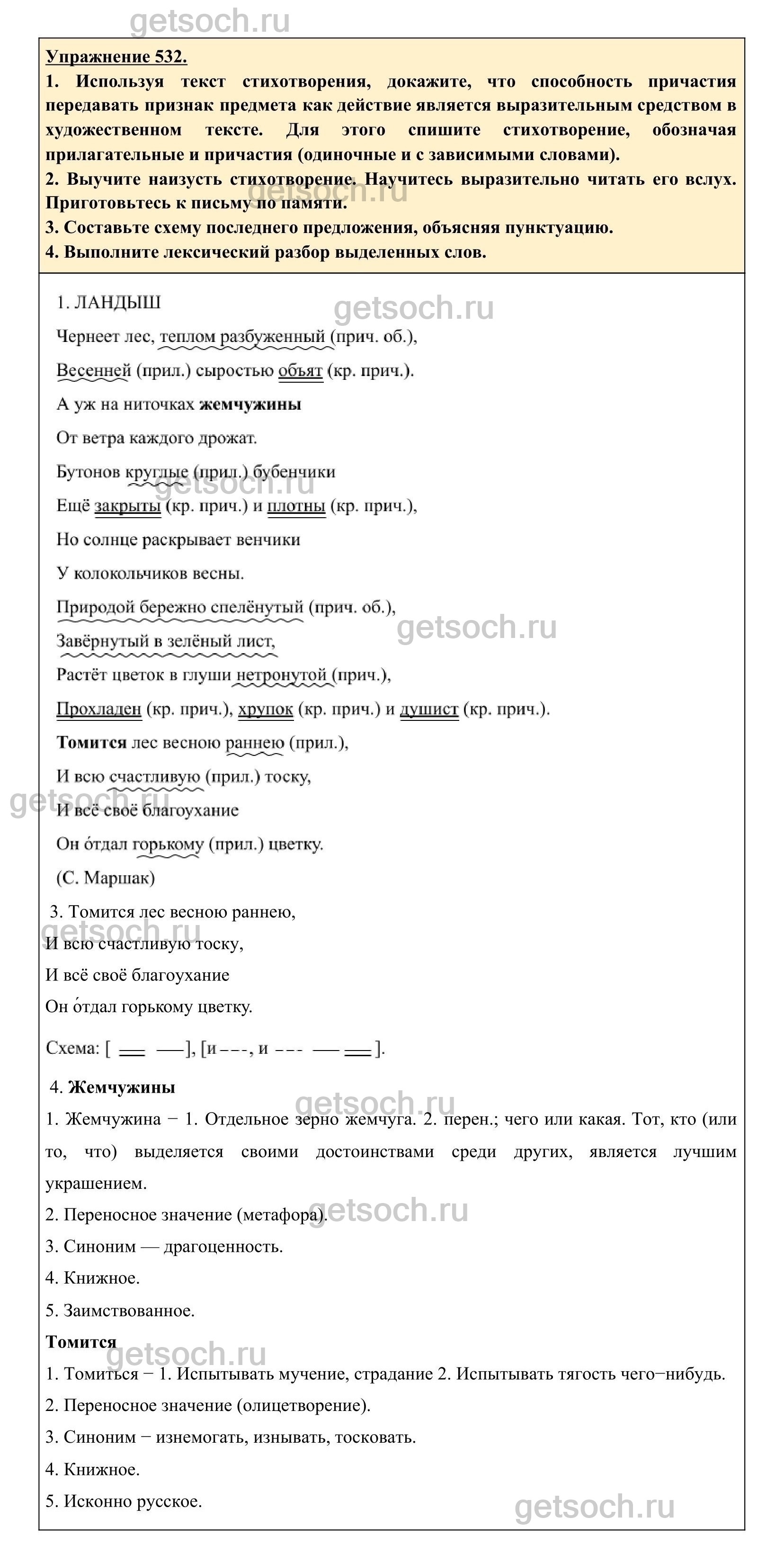 Рассмотрим ответы на Упражнение 532 из учебника по русскому языку для 6 класса Разумовской