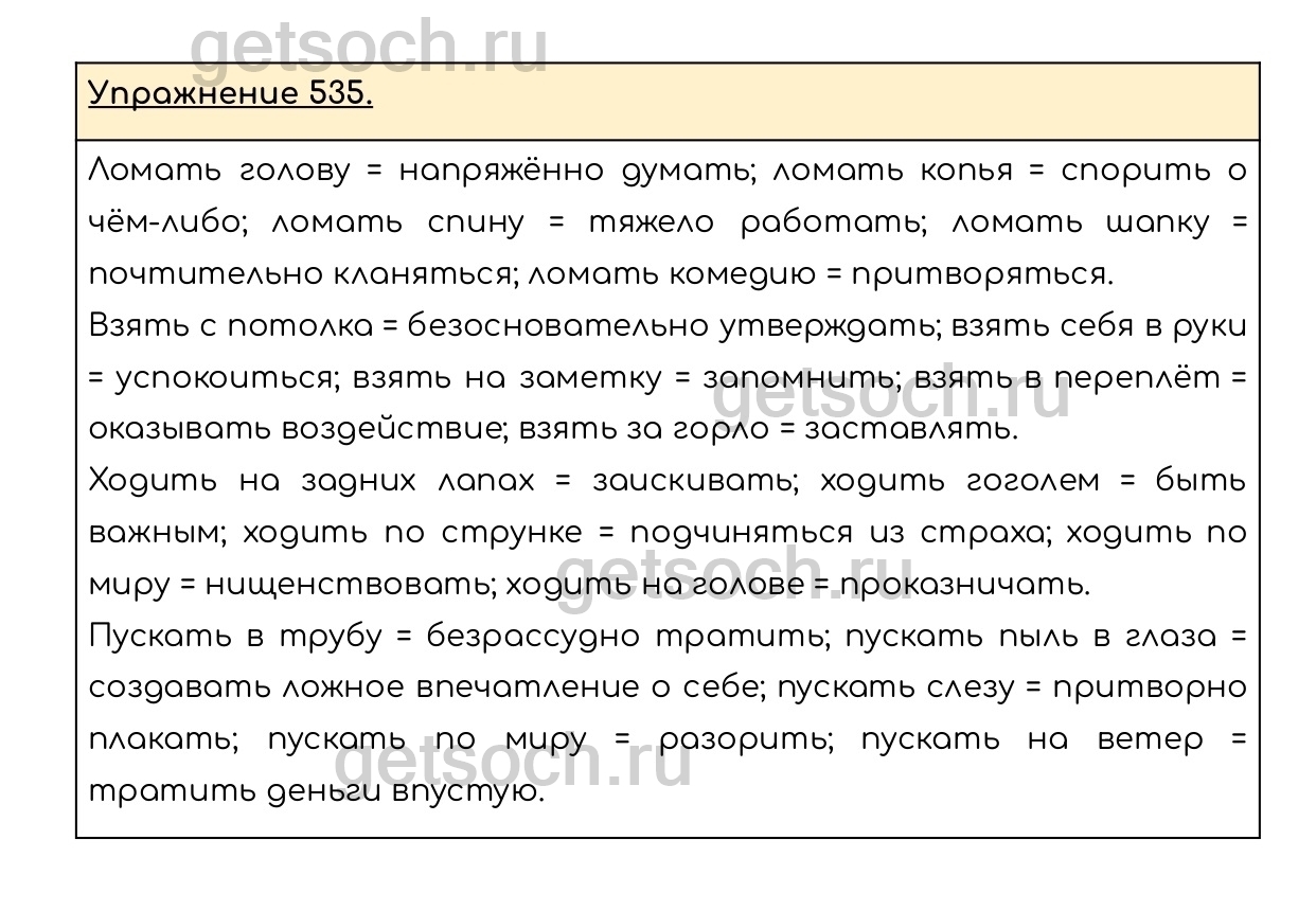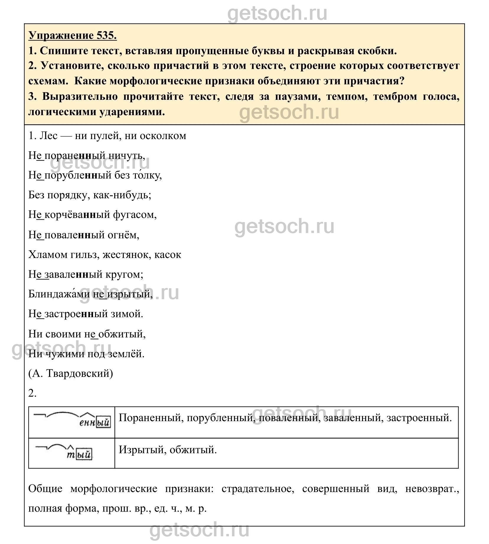 Рассмотрим ответы на Упражнение 535 из учебника по русскому языку для 6 класса Разумовской