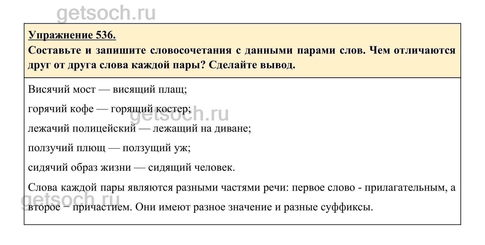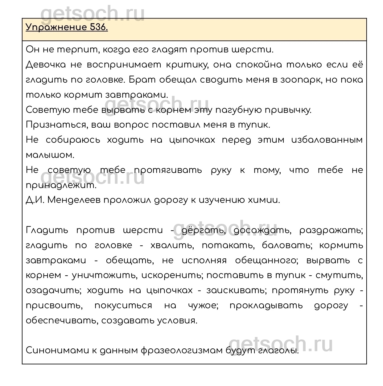 Рассмотрим ответы на Упражнение 536 из учебника по русскому языку для 6 класса Разумовской