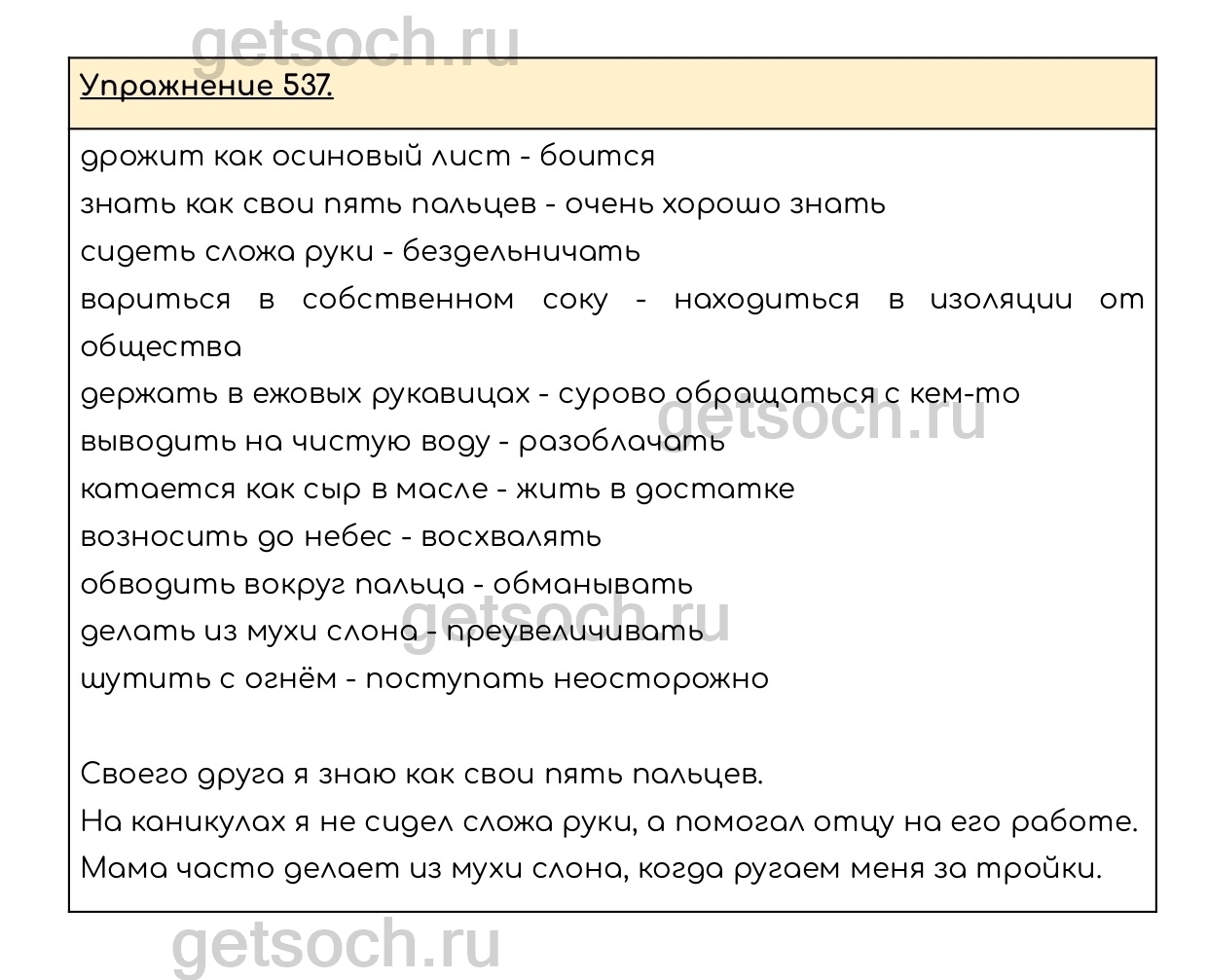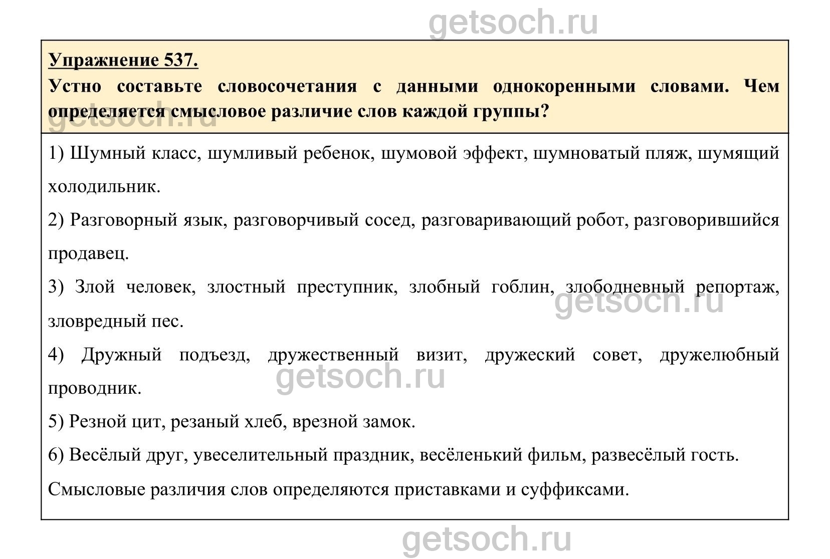 Рассмотрим ответы на Упражнение 537 из учебника по русскому языку для 6 класса Разумовской