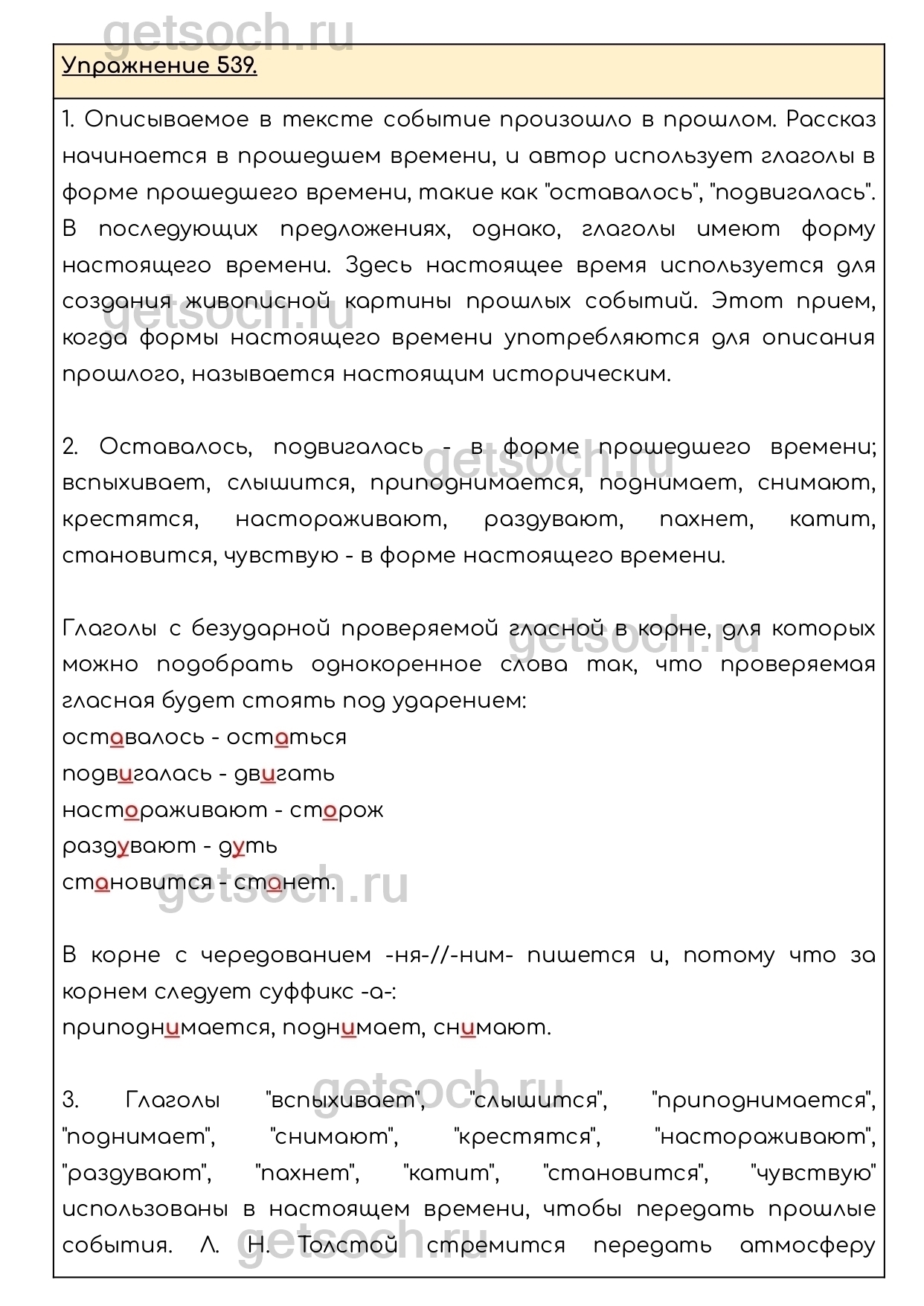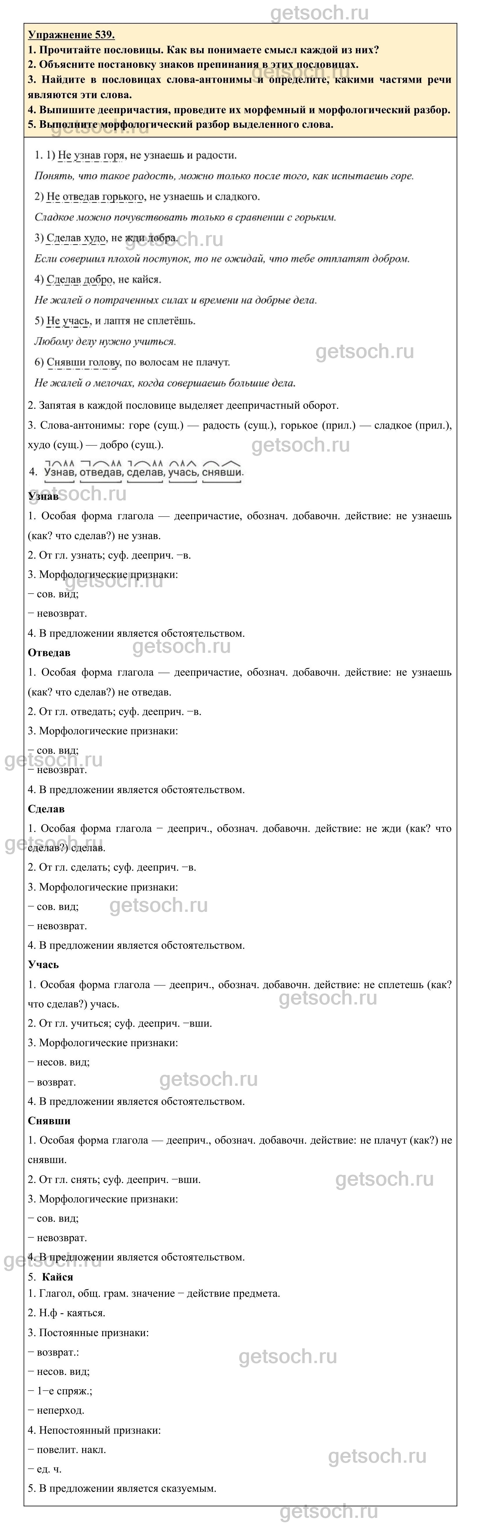 Рассмотрим ответы на Упражнение 539 из учебника по русскому языку для 6 класса Разумовской