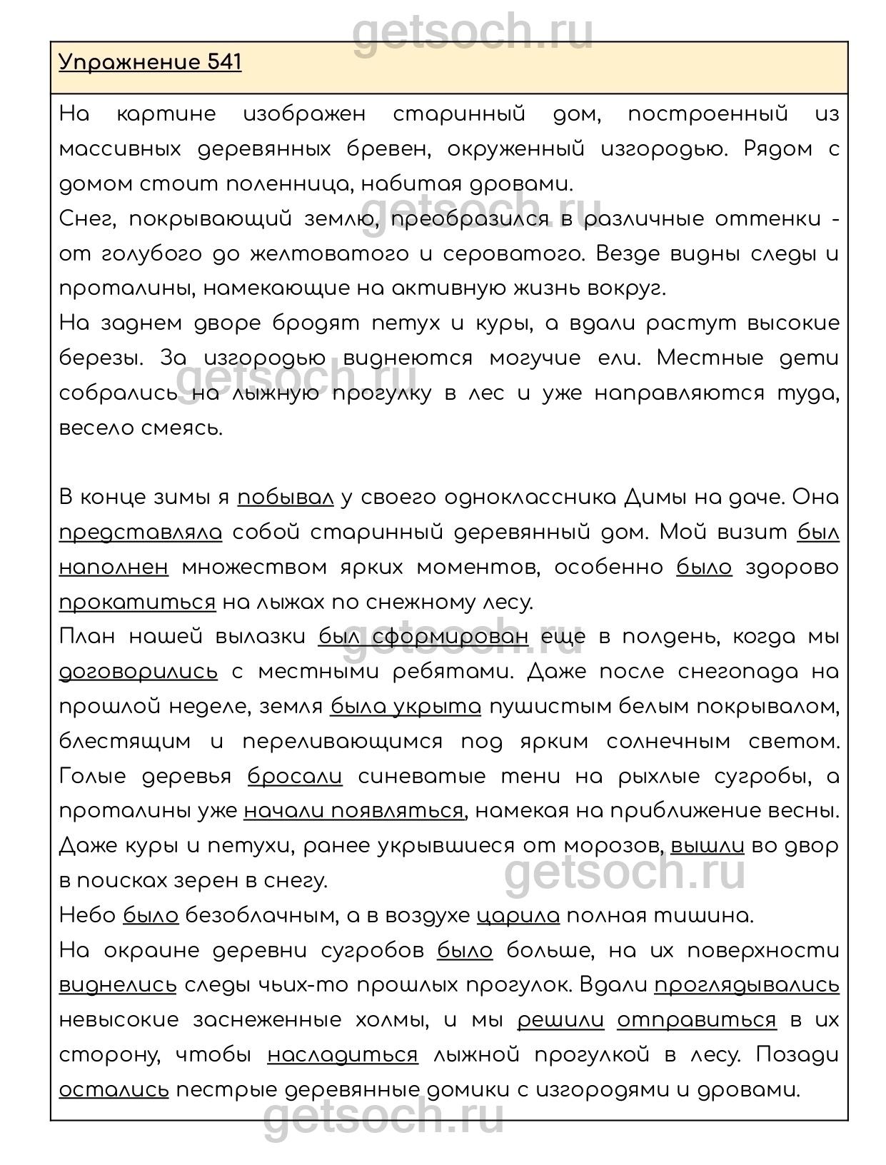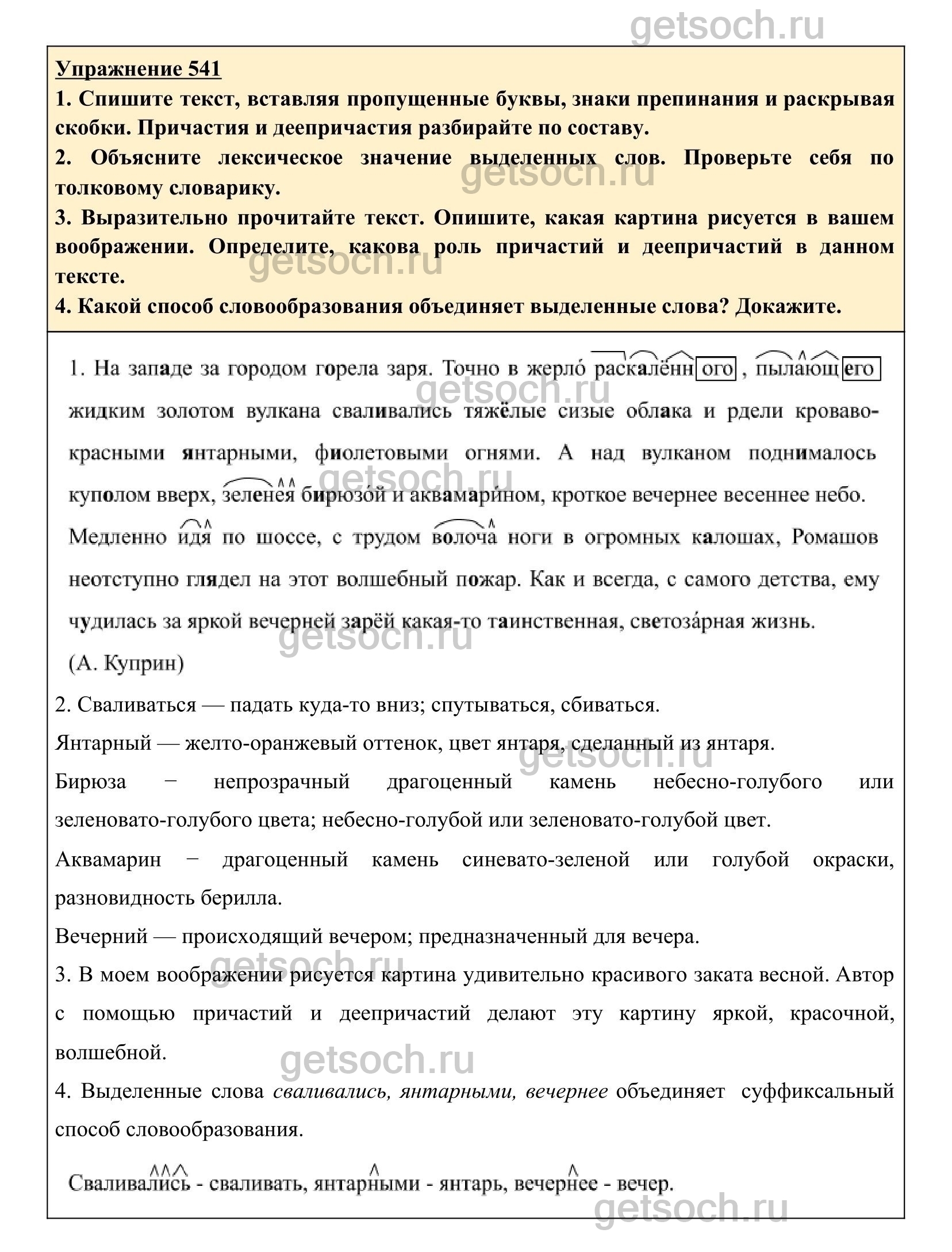 Рассмотрим ответы на Упражнение 541 из учебника по русскому языку для 6 класса Разумовской