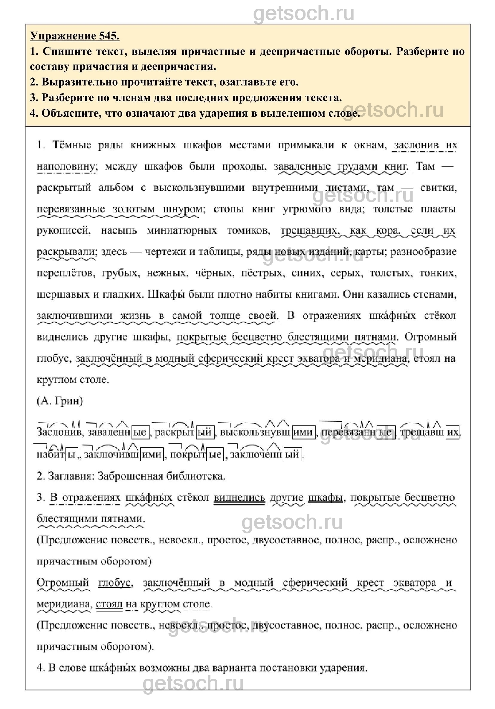 Рассмотрим ответы на Упражнение 545 из учебника по русскому языку для 6 класса Разумовской
