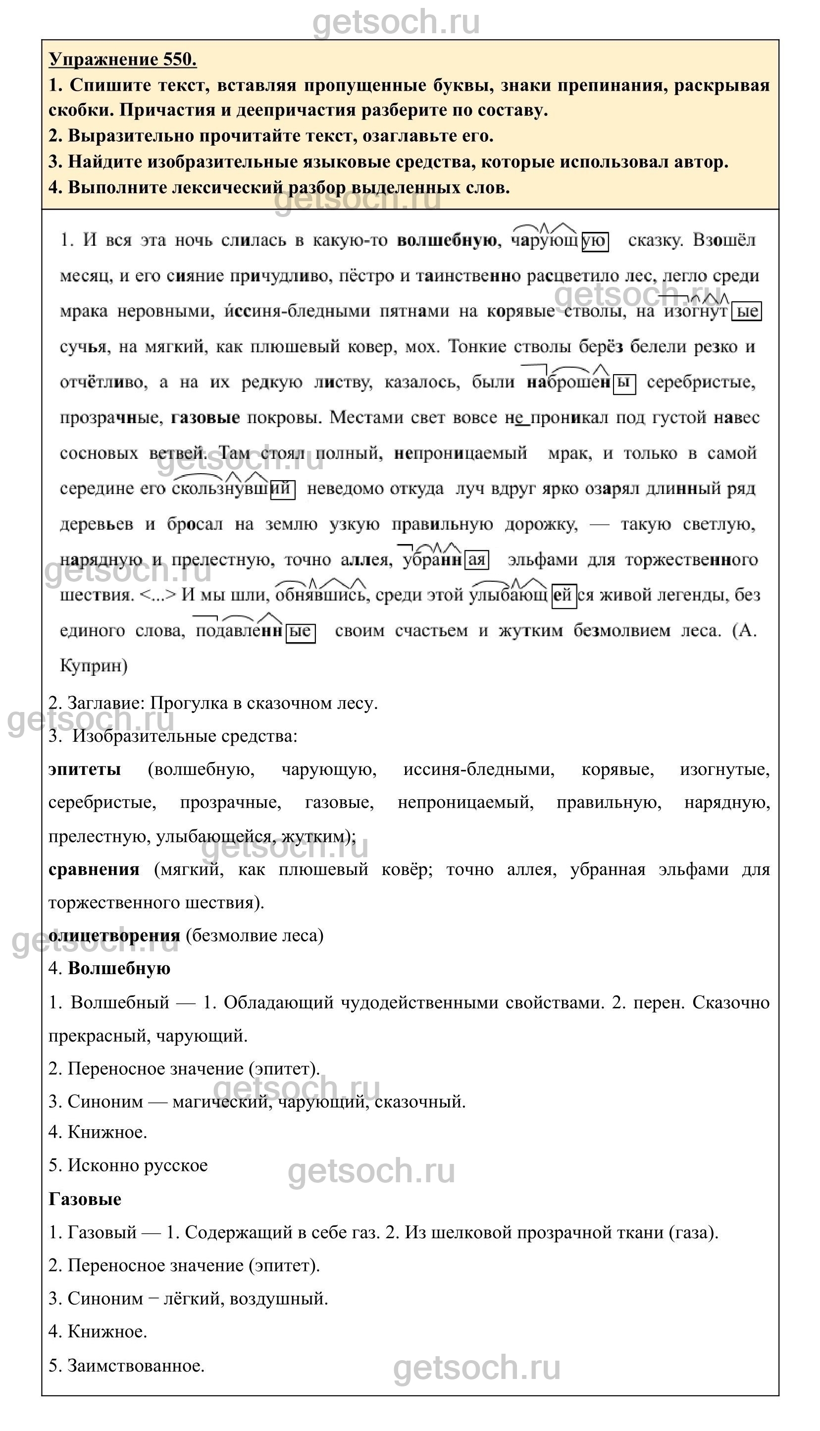 Рассмотрим ответы на Упражнение 550 из учебника по русскому языку для 6 класса Разумовской