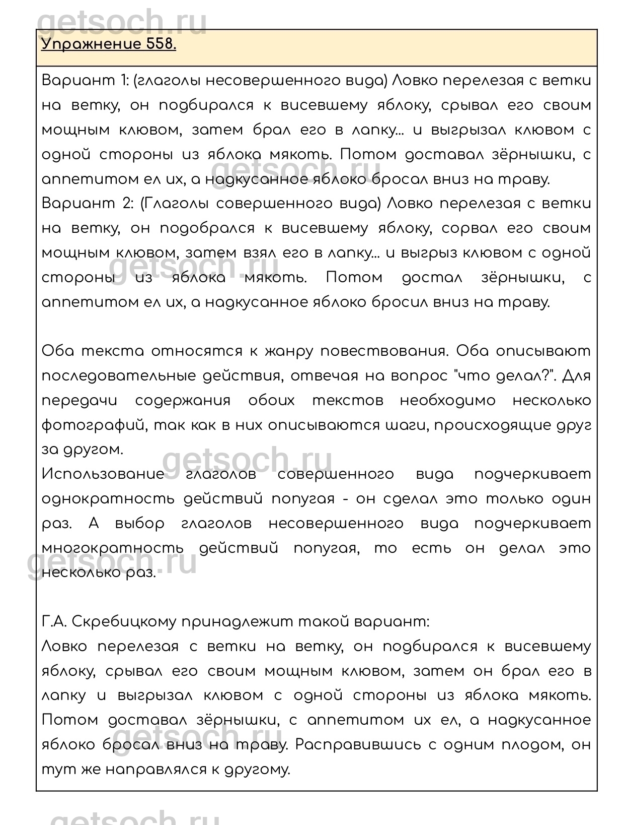 Рассмотрим ответы на Упражнение 558 из учебника по русскому языку для 6 класса Разумовской