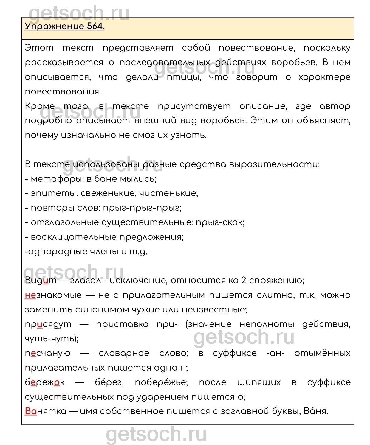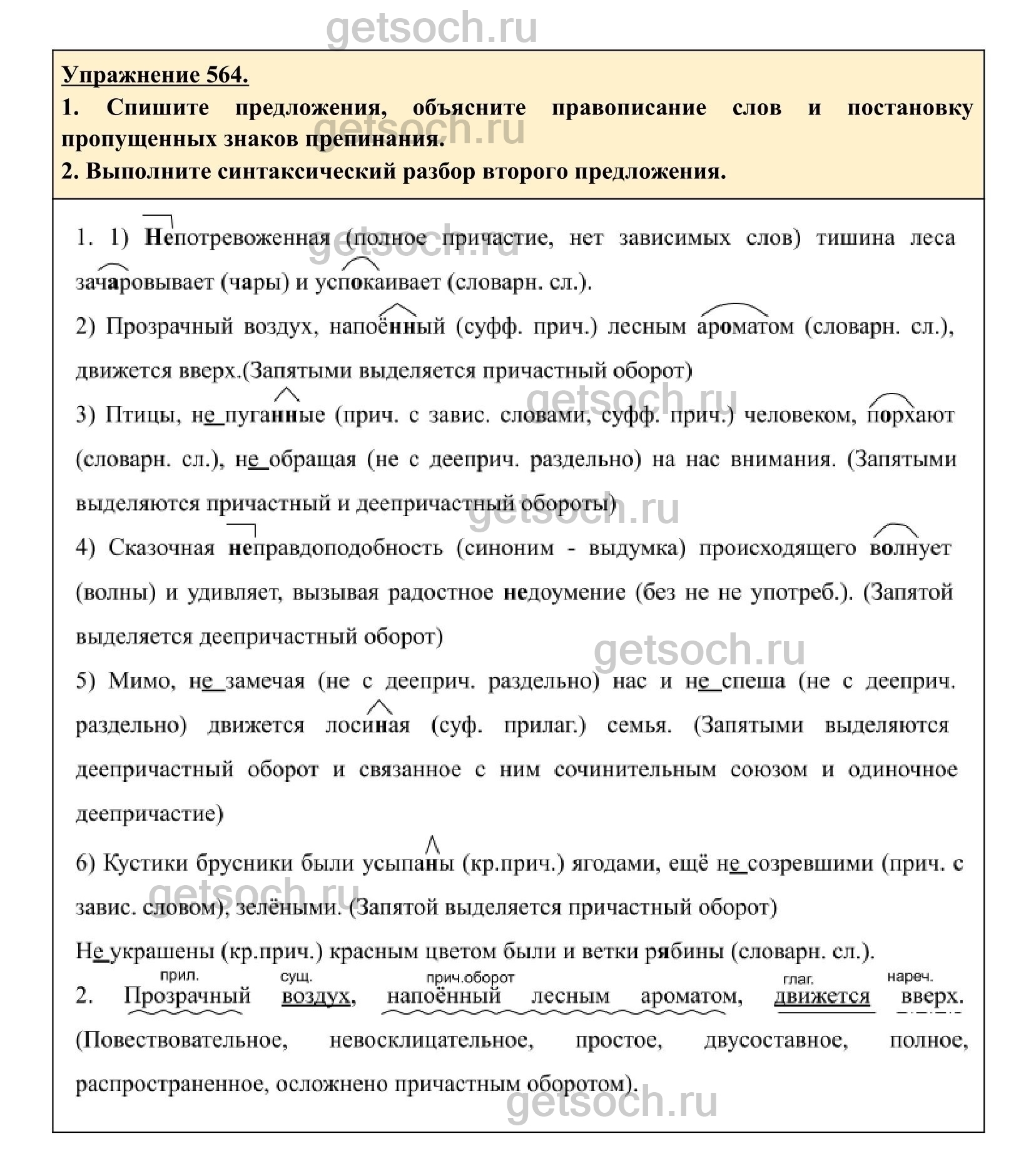 Рассмотрим ответы на Упражнение 564 из учебника по русскому языку для 6 класса Разумовской
