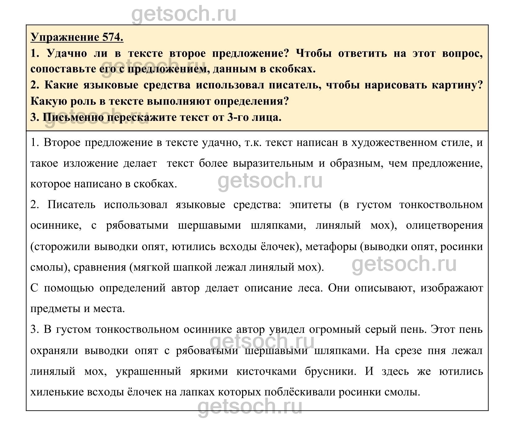 Рассмотрим ответы на Упражнение 574 из учебника по русскому языку для 6 класса Разумовской