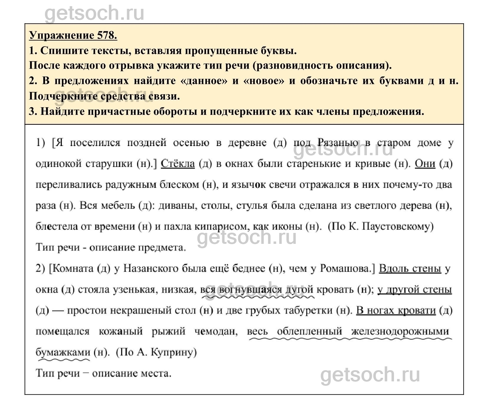Рассмотрим ответы на Упражнение 578 из учебника по русскому языку для 6 класса Разумовской