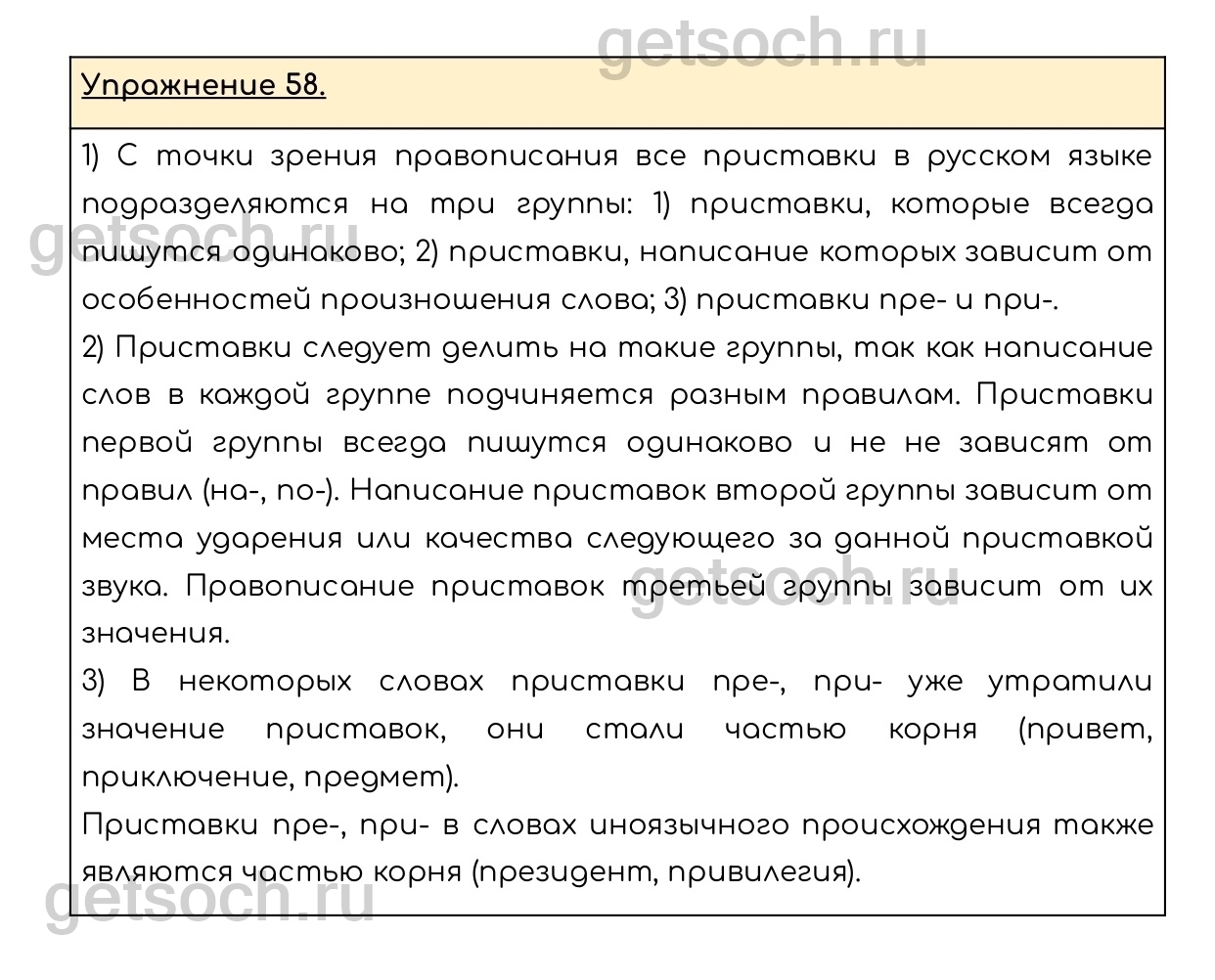 Рассмотрим ответы на Упражнение 58 из учебника по русскому языку для 6 класса Разумовской