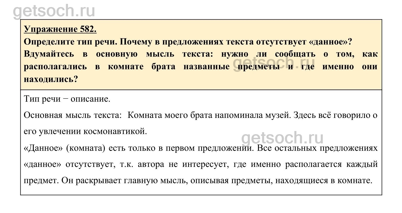 Рассмотрим ответы на Упражнение 582 из учебника по русскому языку для 6 класса Разумовской