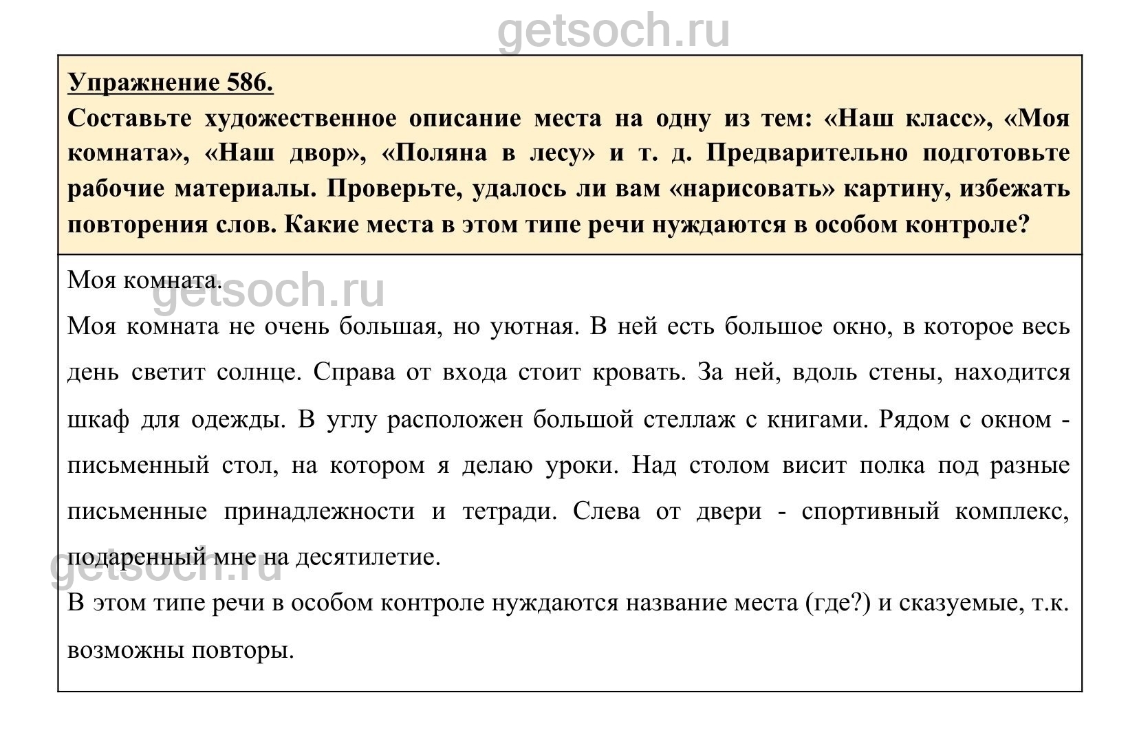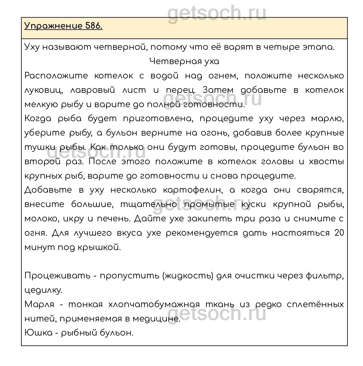 Рассмотрим ответы на Упражнение 586 из учебника по русскому языку для 6 класса Разумовской