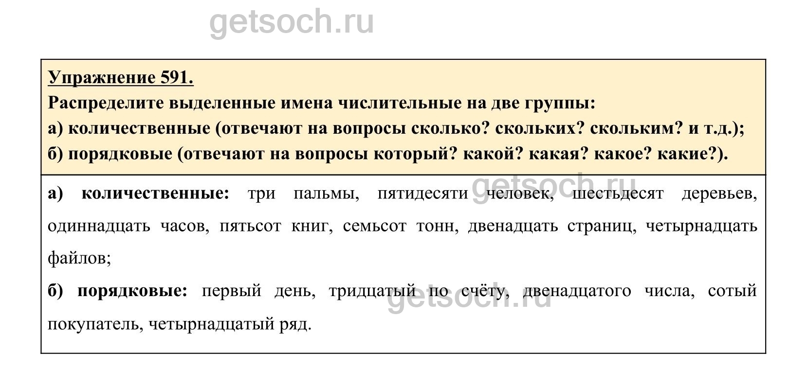 Рассмотрим ответы на Упражнение 591 из учебника по русскому языку для 6 класса Разумовской