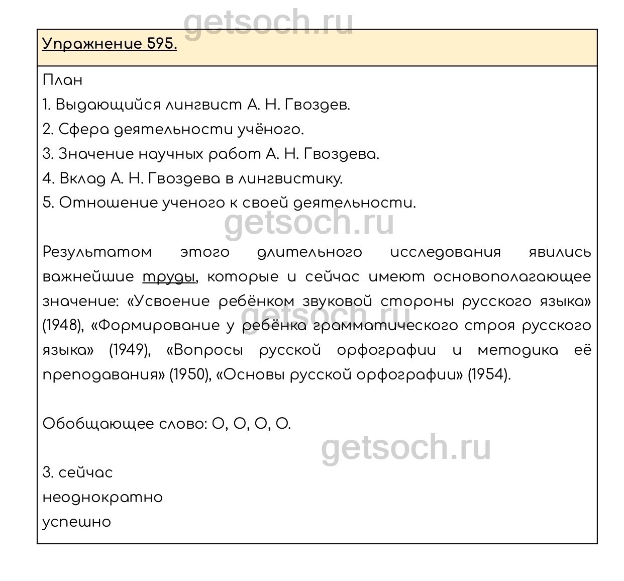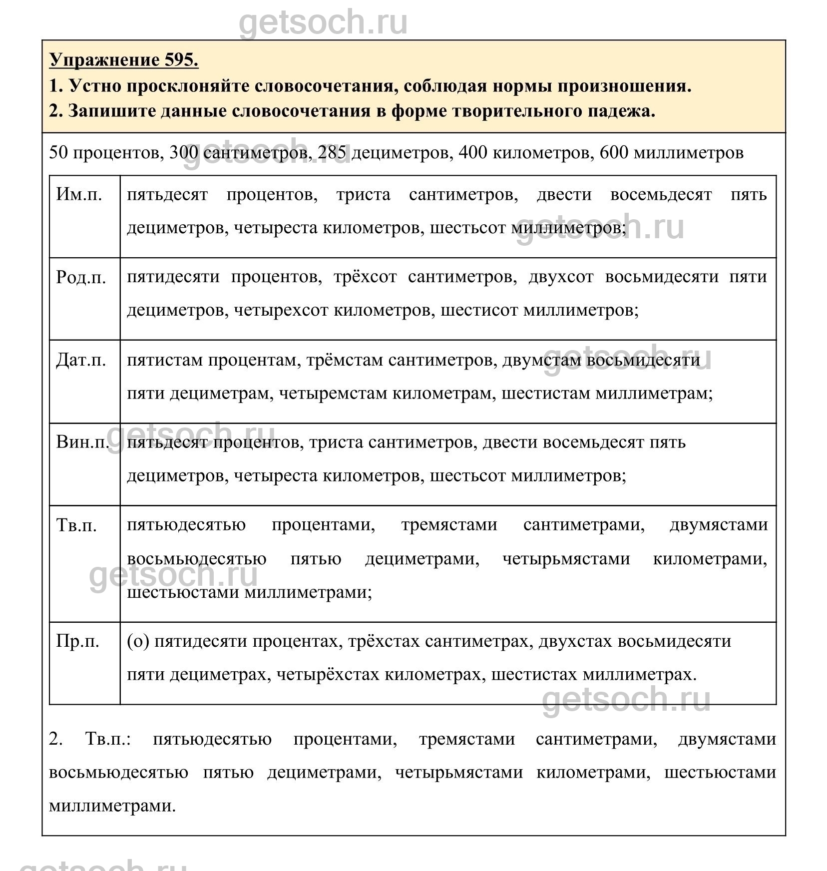 Рассмотрим ответы на Упражнение 595 из учебника по русскому языку для 6 класса Разумовской