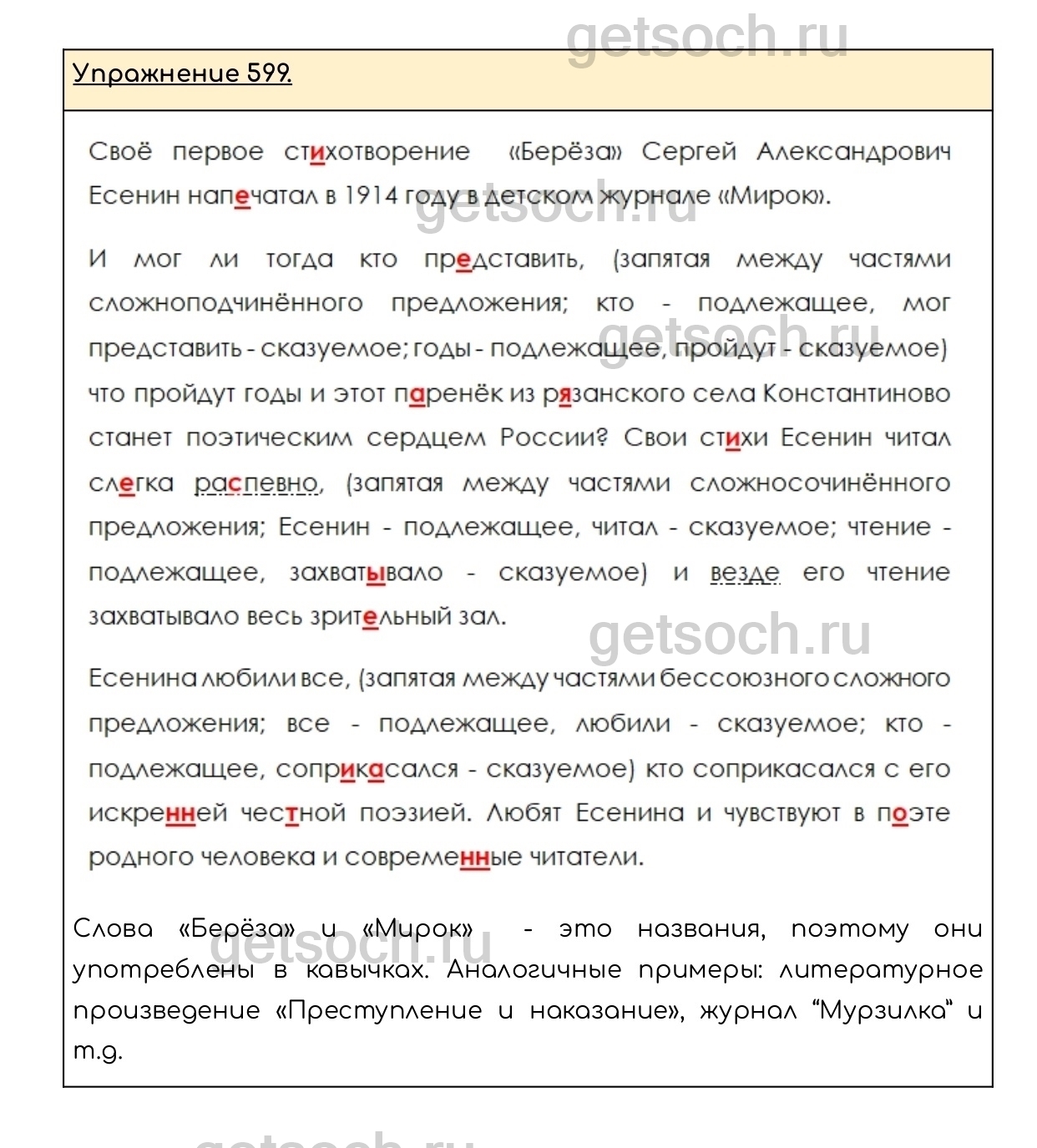 Рассмотрим ответы на Упражнение 599 из учебника по русскому языку для 6 класса Разумовской