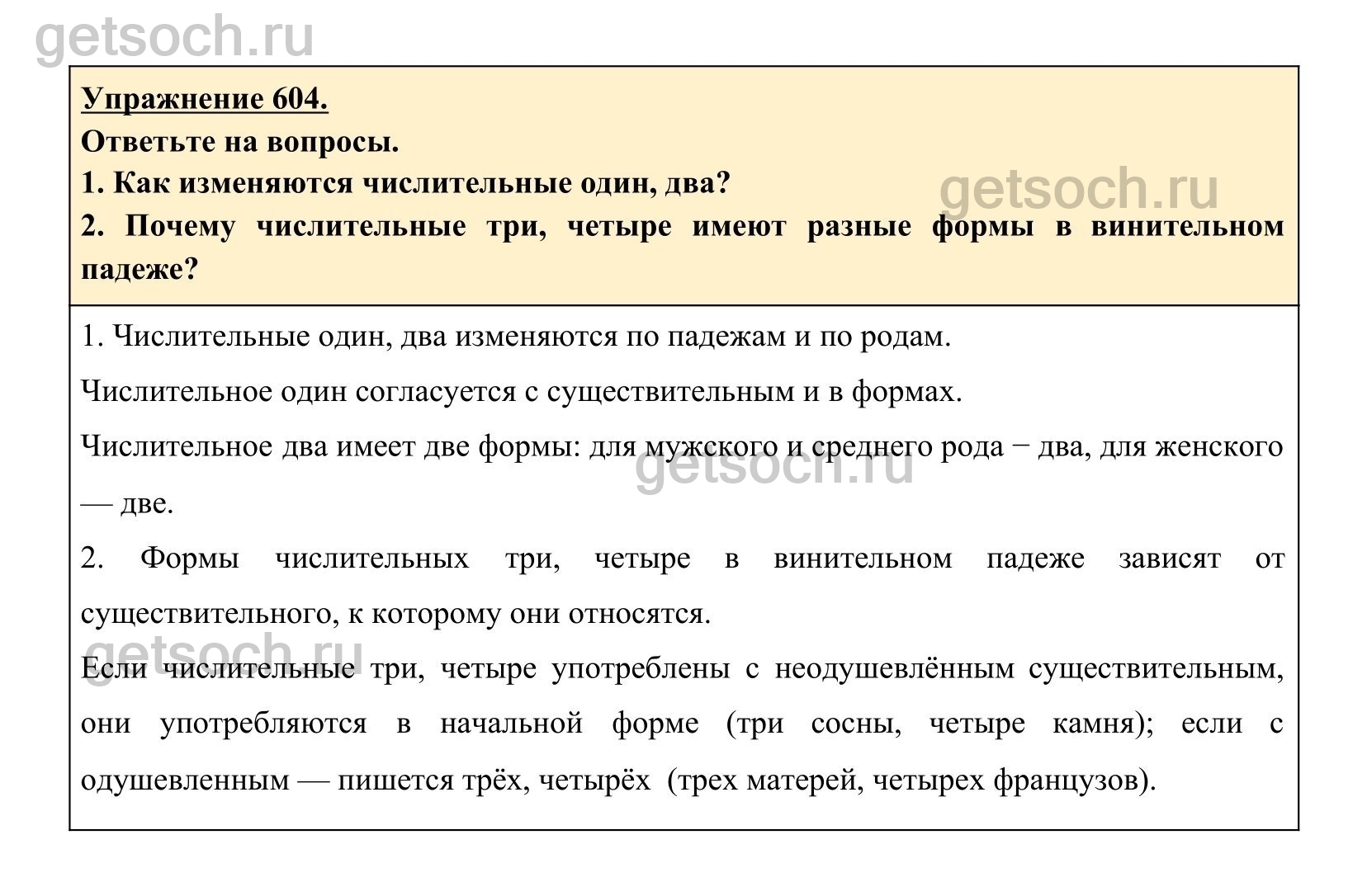 Рассмотрим ответы на Упражнение 604 из учебника по русскому языку для 6 класса Разумовской