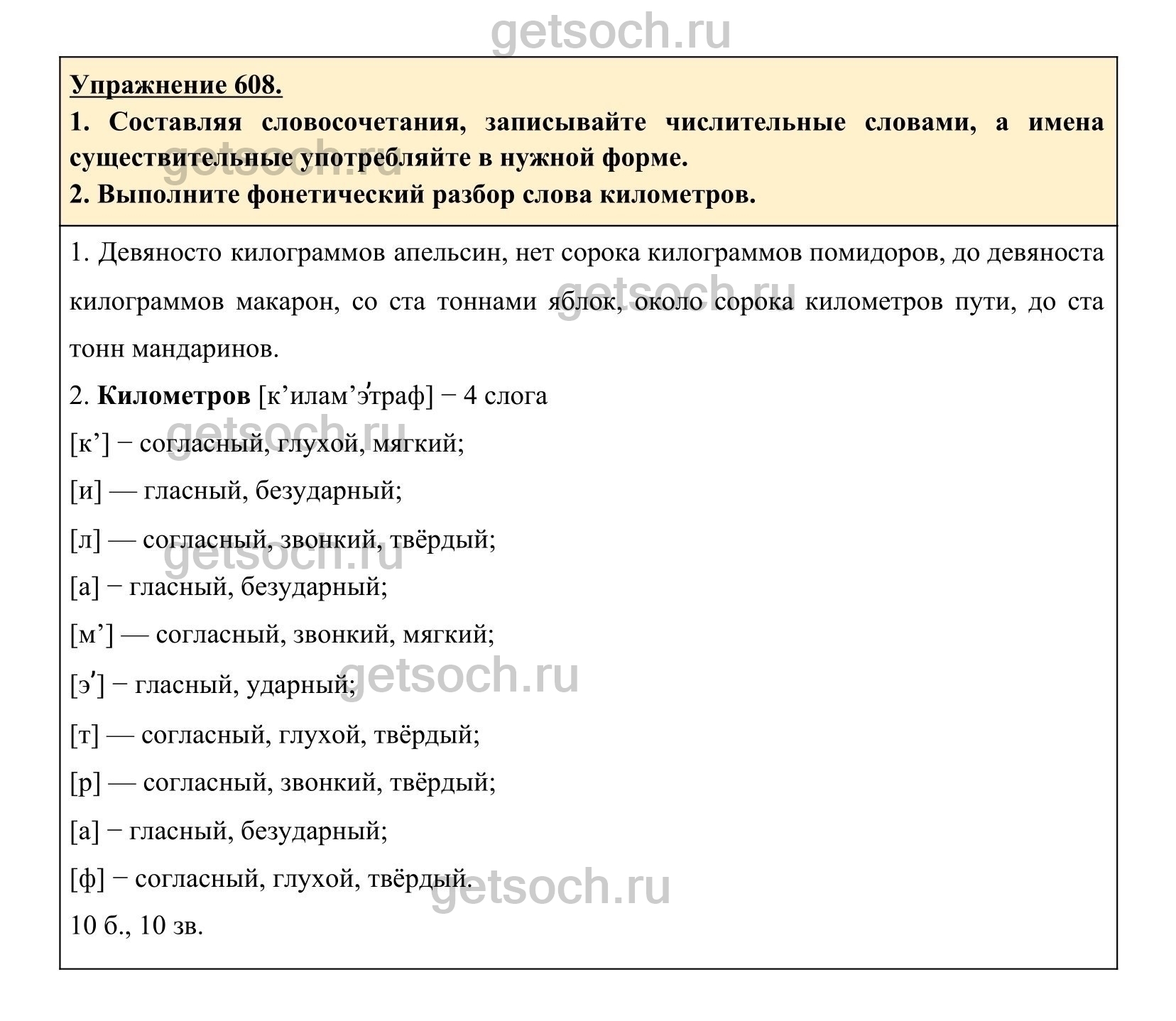 Рассмотрим ответы на Упражнение 608 из учебника по русскому языку для 6 класса Разумовской