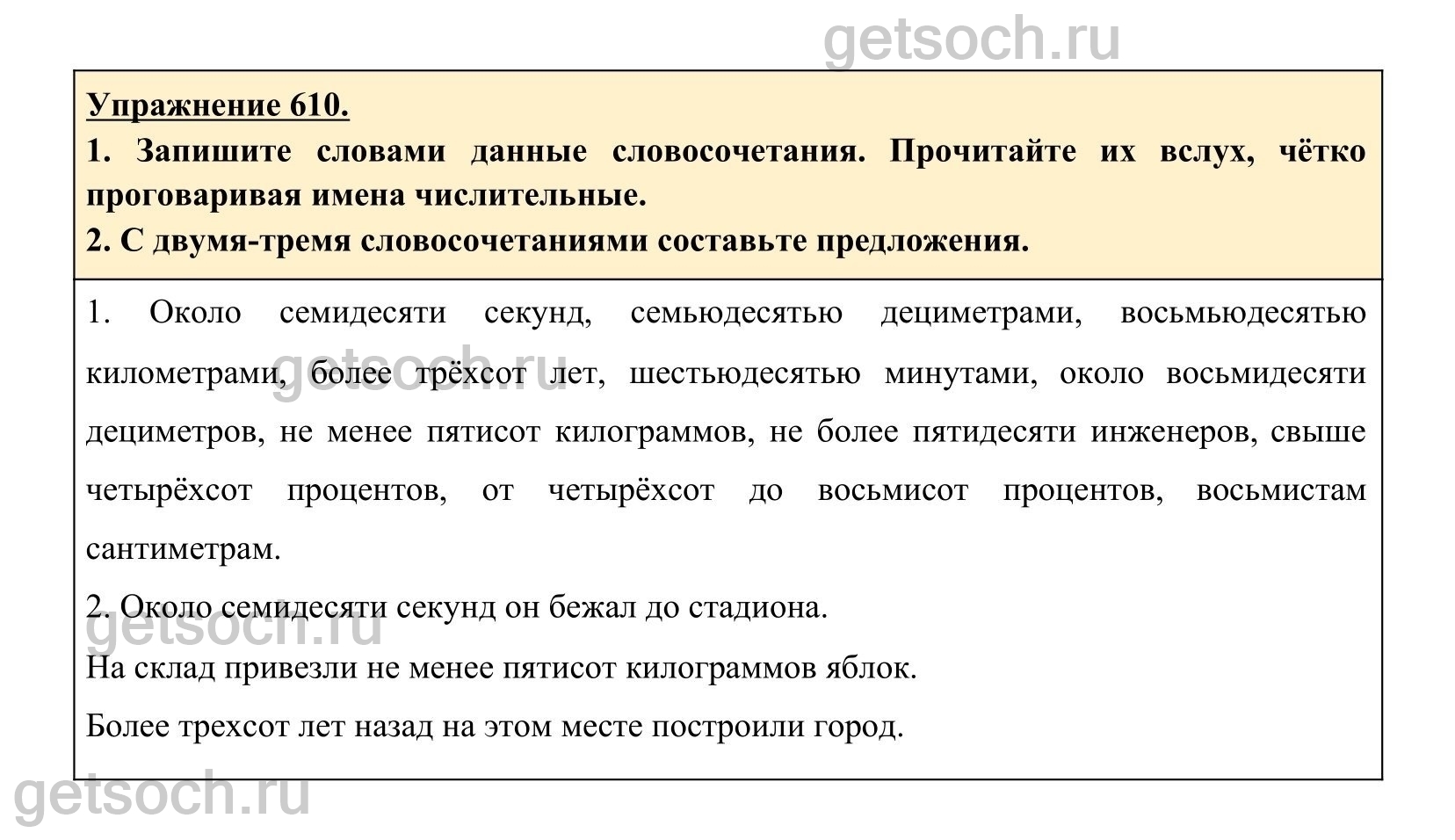 Рассмотрим ответы на Упражнение 610 из учебника по русскому языку для 6 класса Разумовской