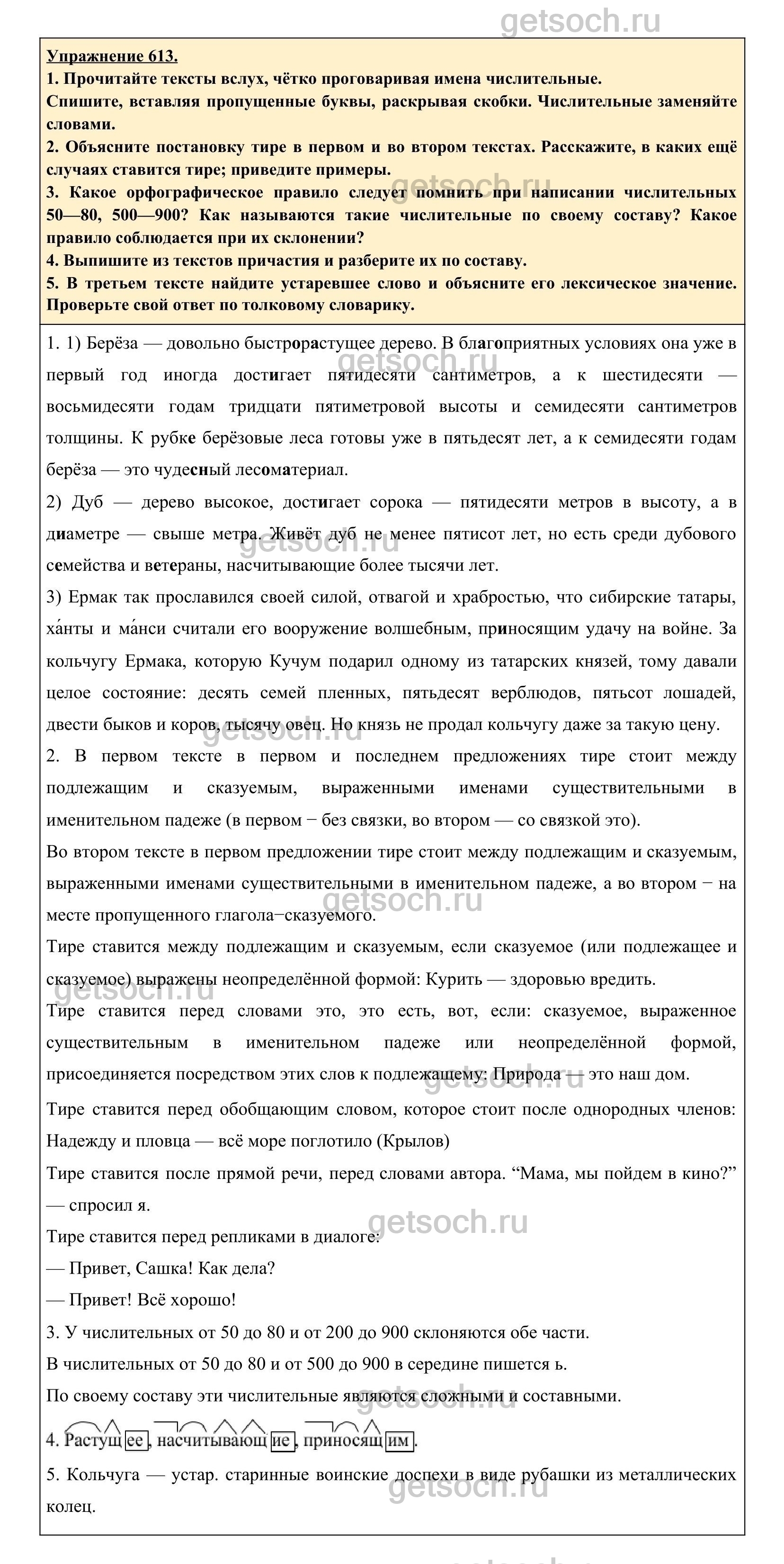 Рассмотрим ответы на Упражнение 613 из учебника по русскому языку для 6 класса Разумовской